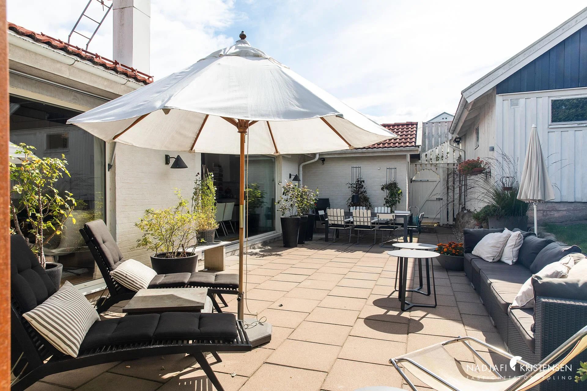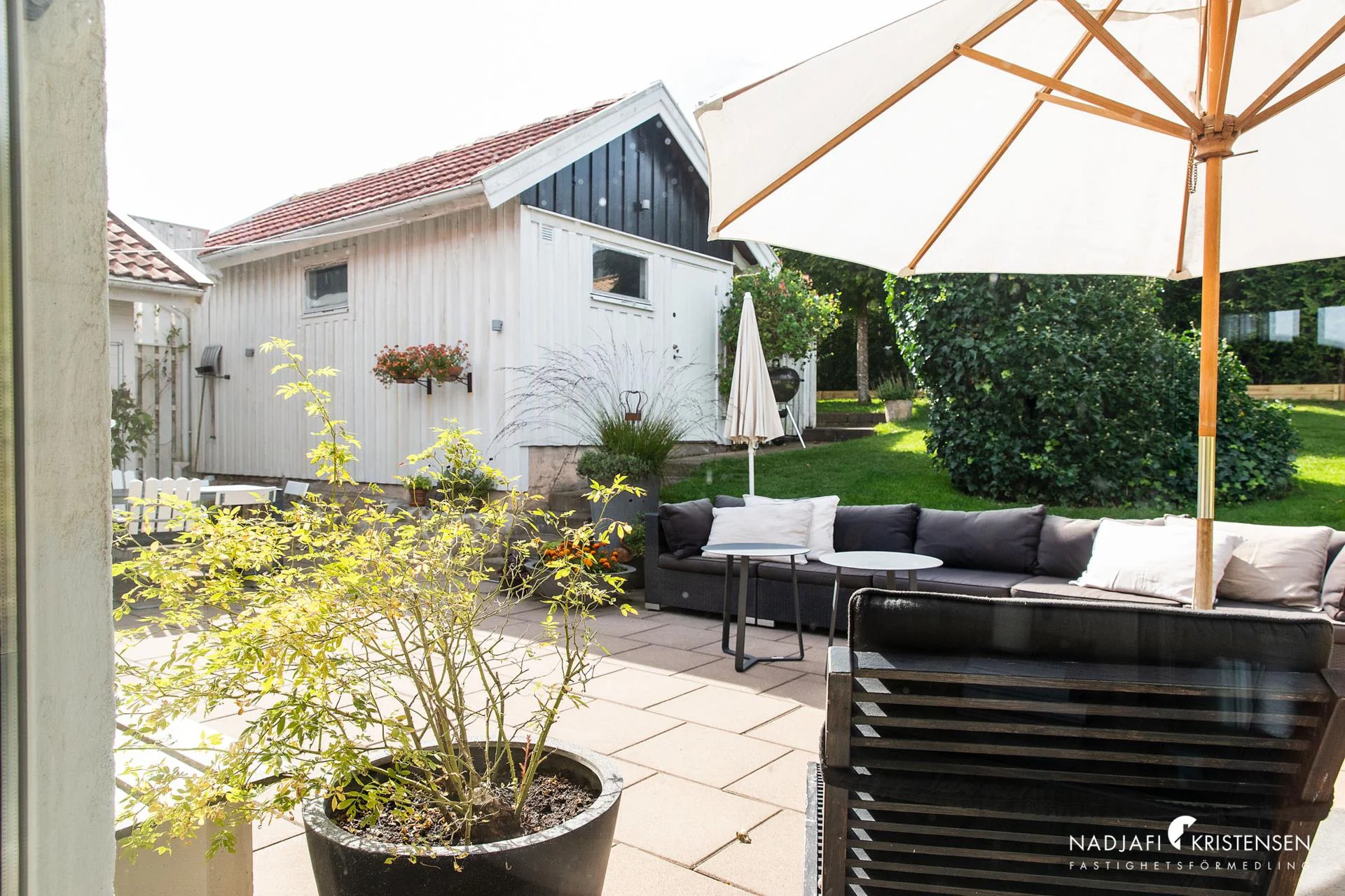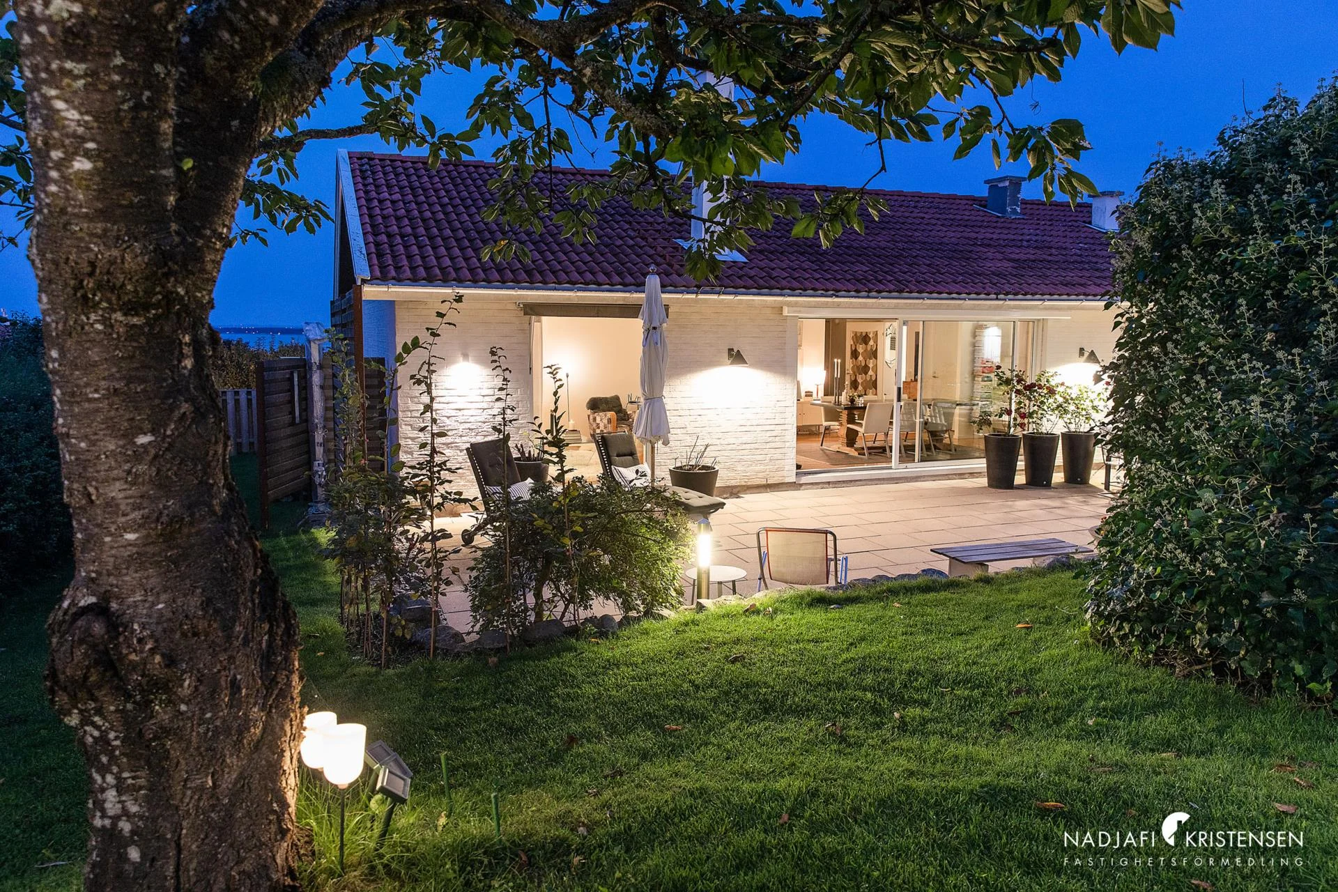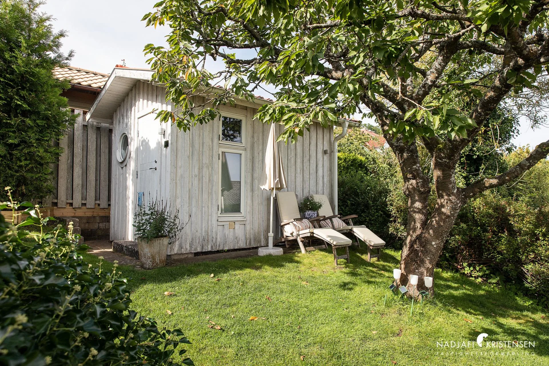 Denna villa erbjuder en inbjudande och ljus interiör med imponerande takhöjd och stora fönsterpartier i söderläge, vilket suddar ut gränsen mellan ute och inne. Redan när du kliver in möts du av den frodiga trädgården som vackert ramas in av fönstren i det öppna vardagsrummet. En mysig öppen spis, ett stilrent och modernt kök samt en praktisk tvättstuga kompletteras av tre välplanerade sovrum och ett smakfullt badrum. De stora skjutdörrarna öppnar upp mot en lummig trädgård och en solig uteplats, vilket skapar en perfekt plats för både sommarboende och året runt-vistelse – en oas av lugn och komfort.