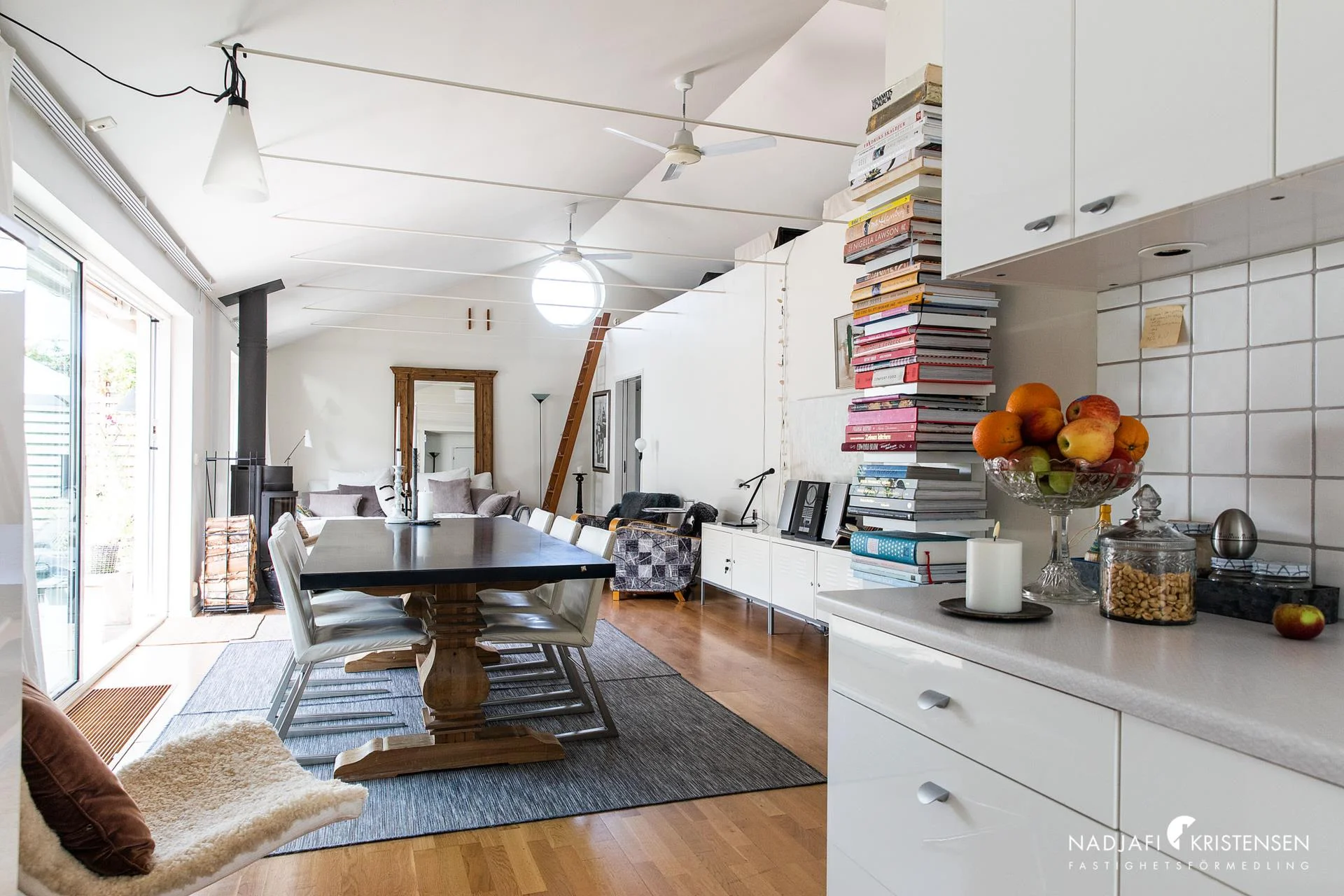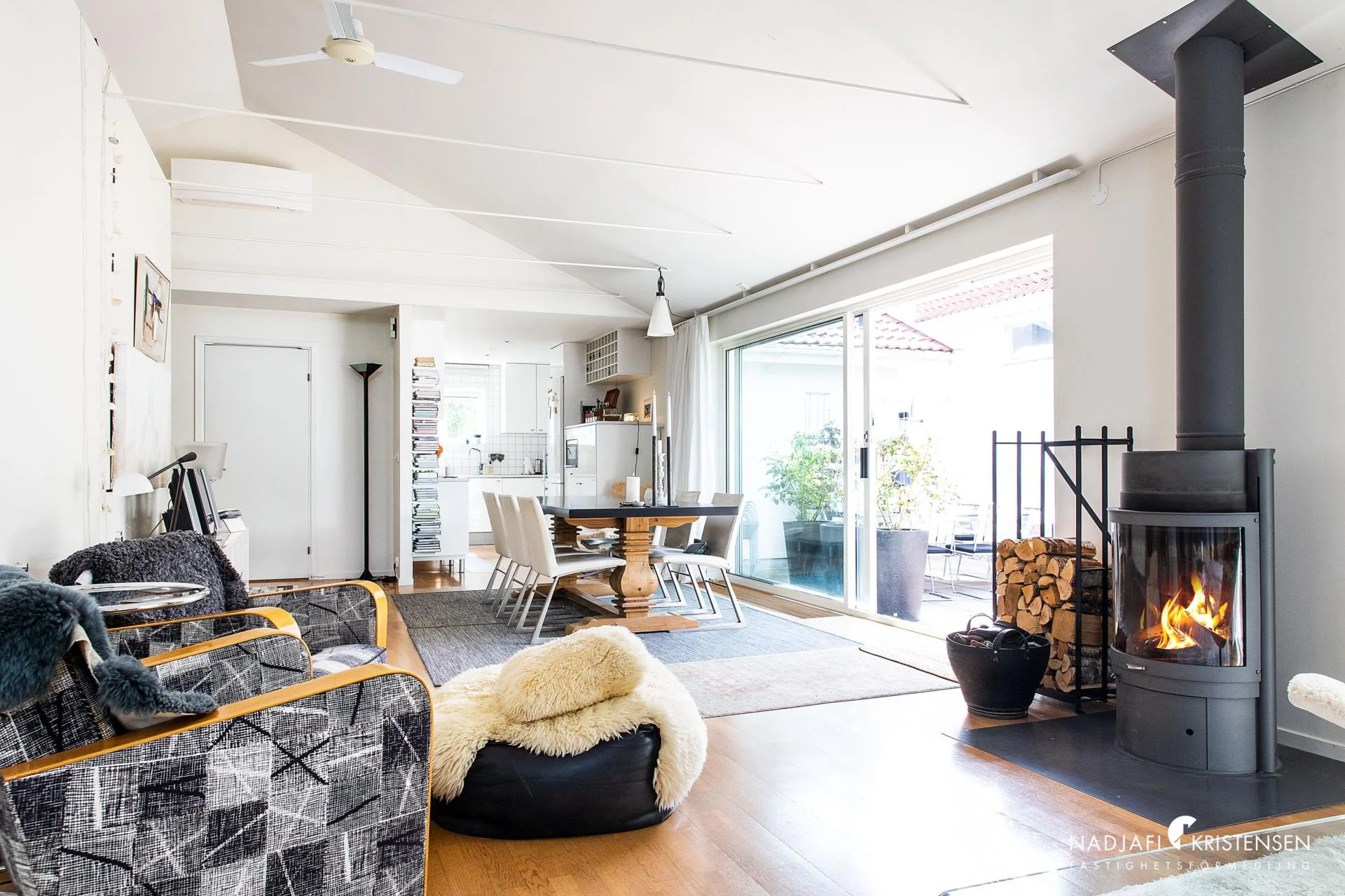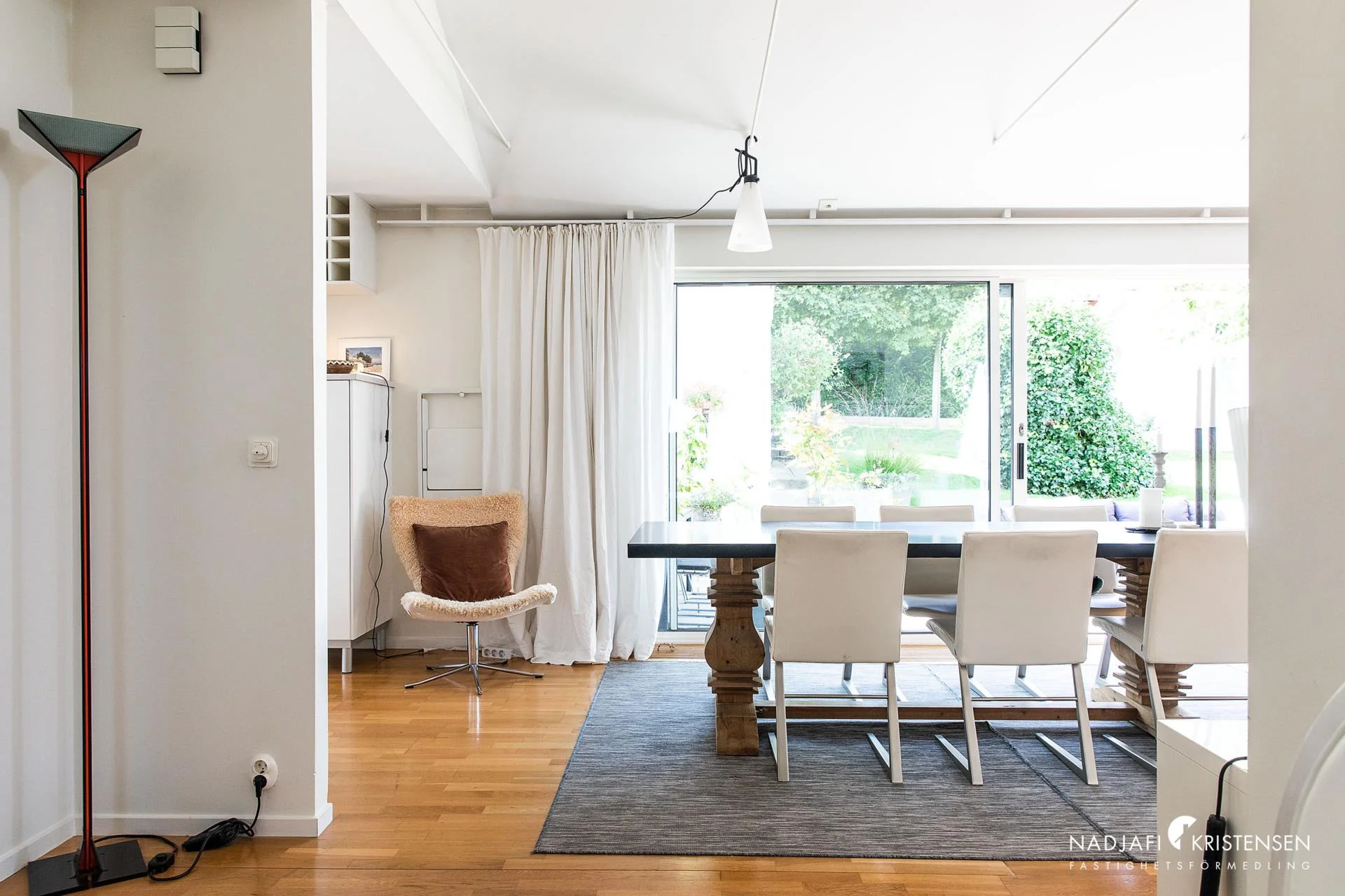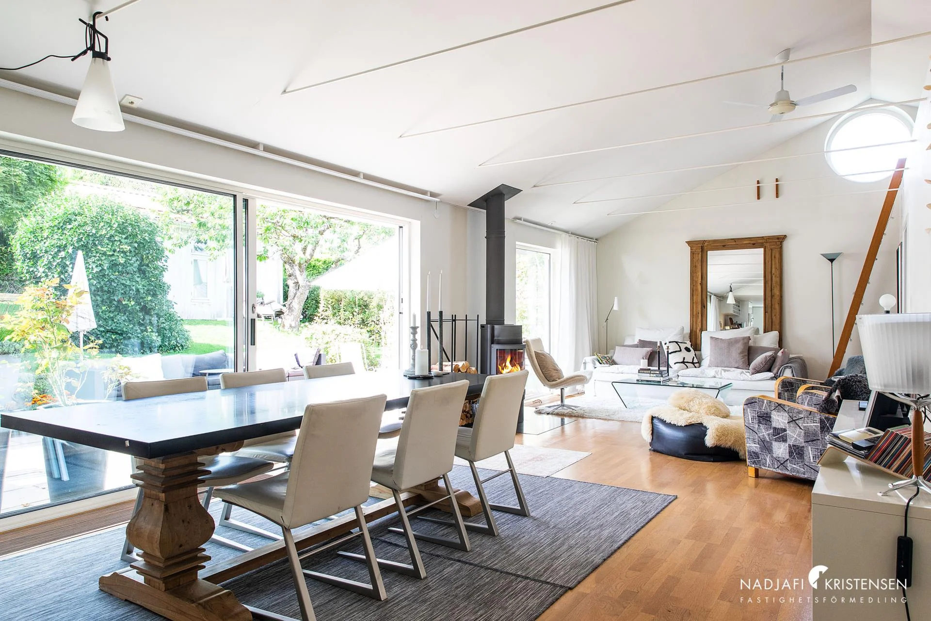 Denna villa erbjuder en inbjudande och ljus interiör med imponerande takhöjd och stora fönsterpartier i söderläge, vilket suddar ut gränsen mellan ute och inne. Redan när du kliver in möts du av den frodiga trädgården som vackert ramas in av fönstren i det öppna vardagsrummet. En mysig öppen spis, ett stilrent och modernt kök samt en praktisk tvättstuga kompletteras av tre välplanerade sovrum och ett smakfullt badrum. De stora skjutdörrarna öppnar upp mot en lummig trädgård och en solig uteplats, vilket skapar en perfekt plats för både sommarboende och året runt-vistelse – en oas av lugn och komfort.