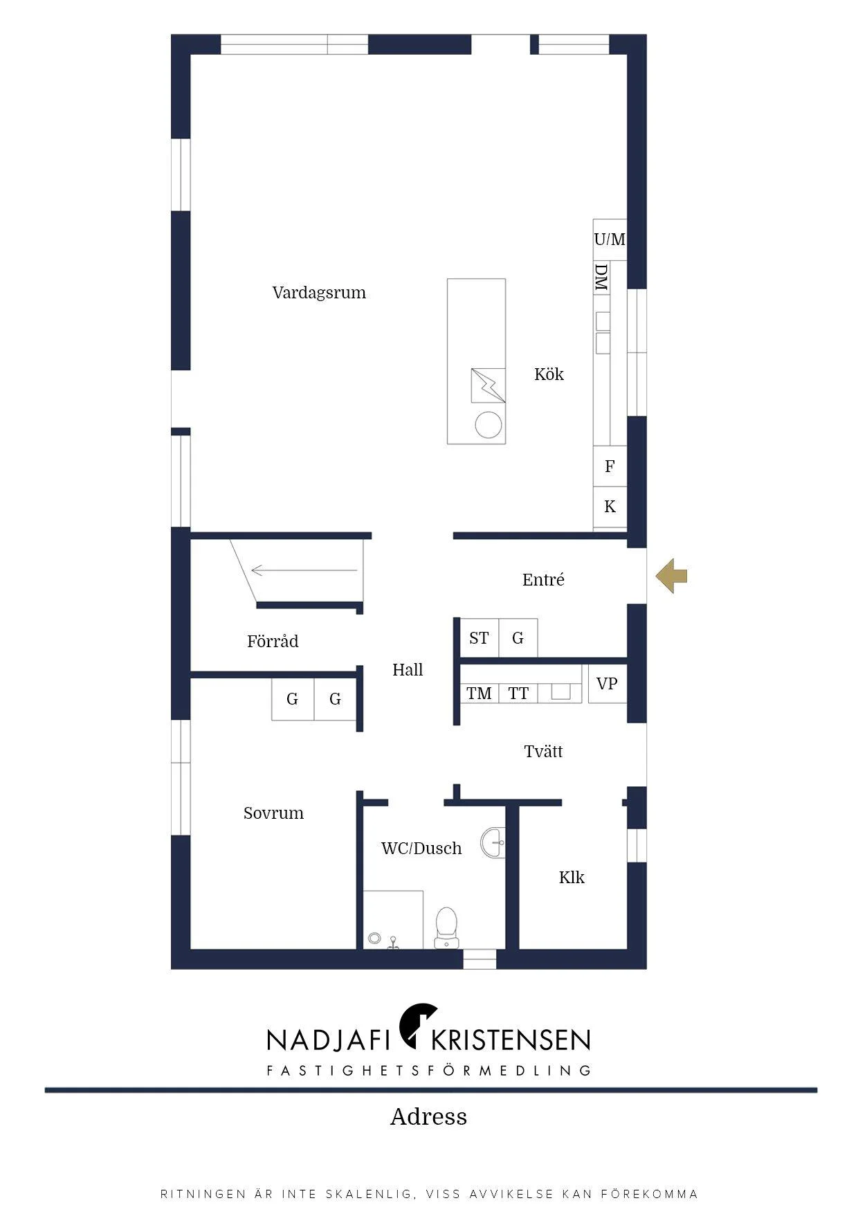 Vidare på entréplanet finns ett helkaklat badrum, ett sovrum och groventré/tvättstuga med intilliggande klädkammare/förrådsrum. Hela entréplanet har vattenburen golvvärme.