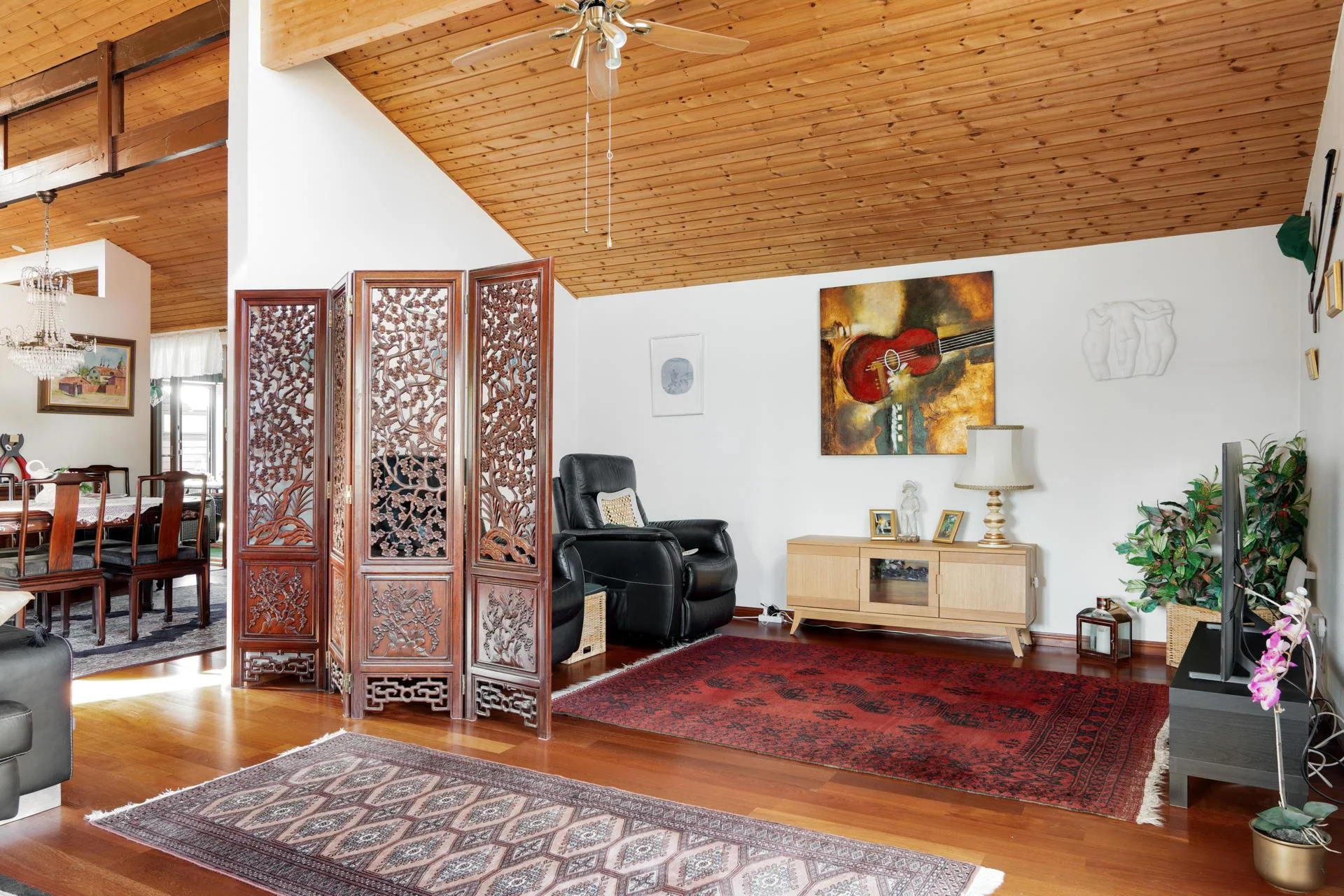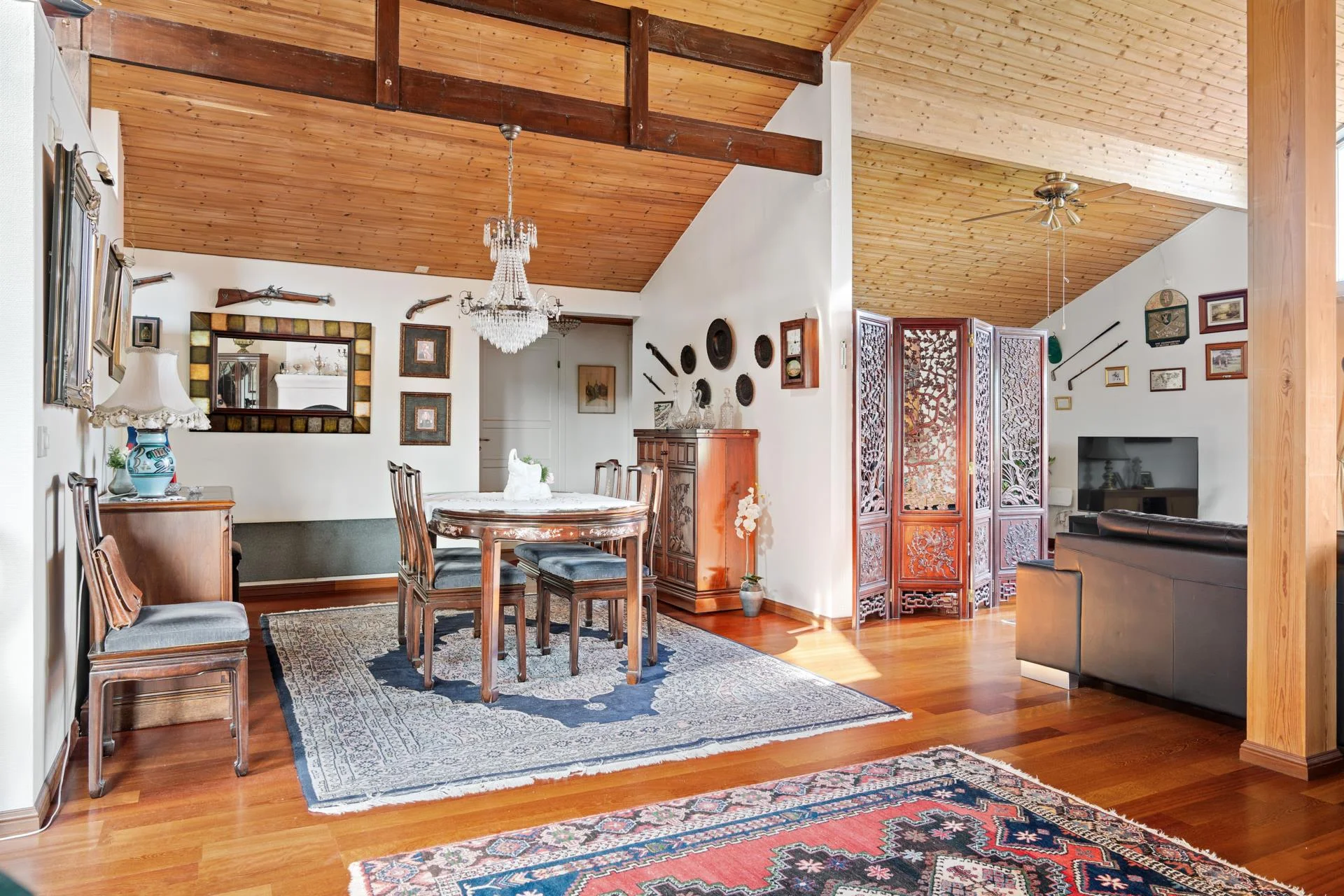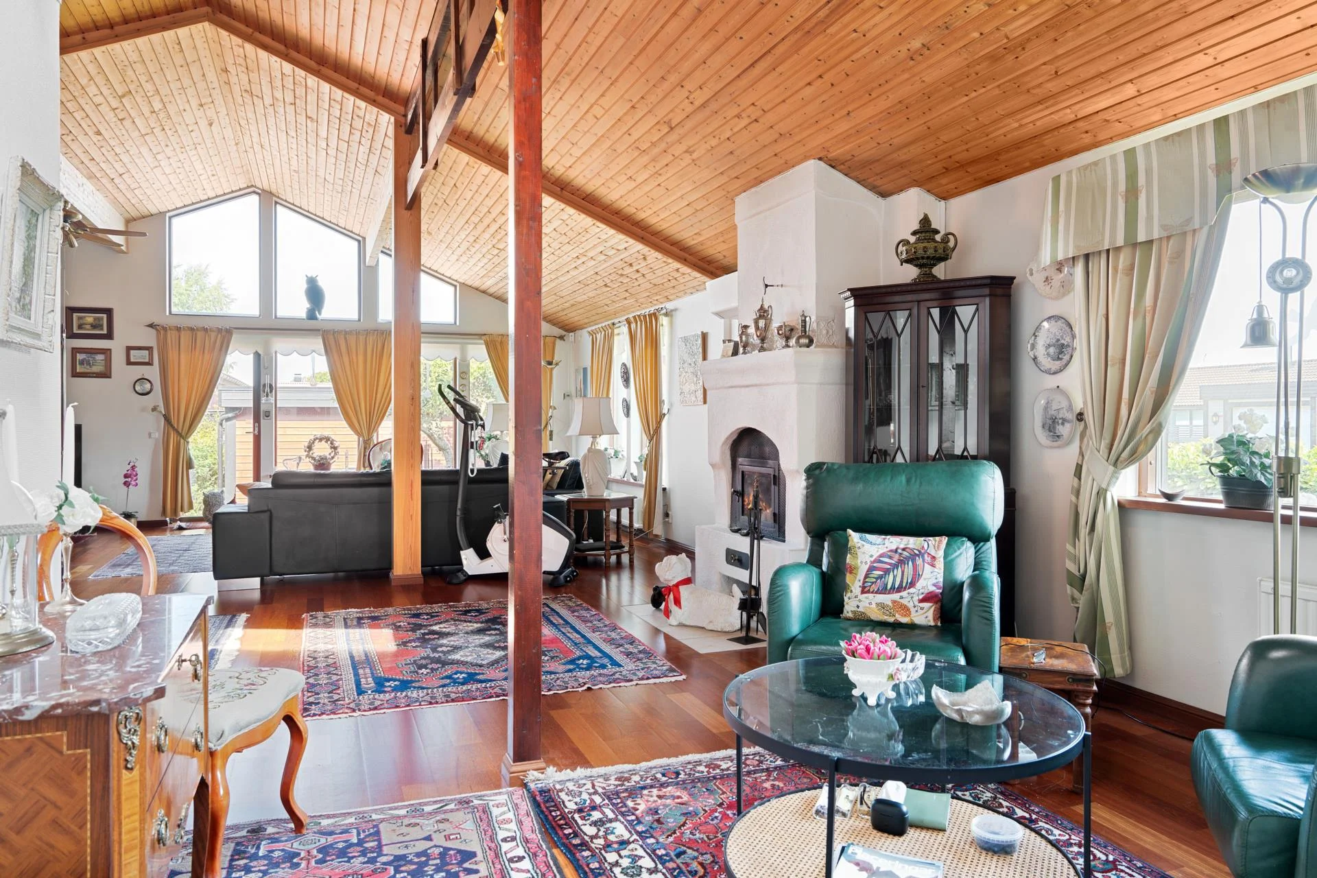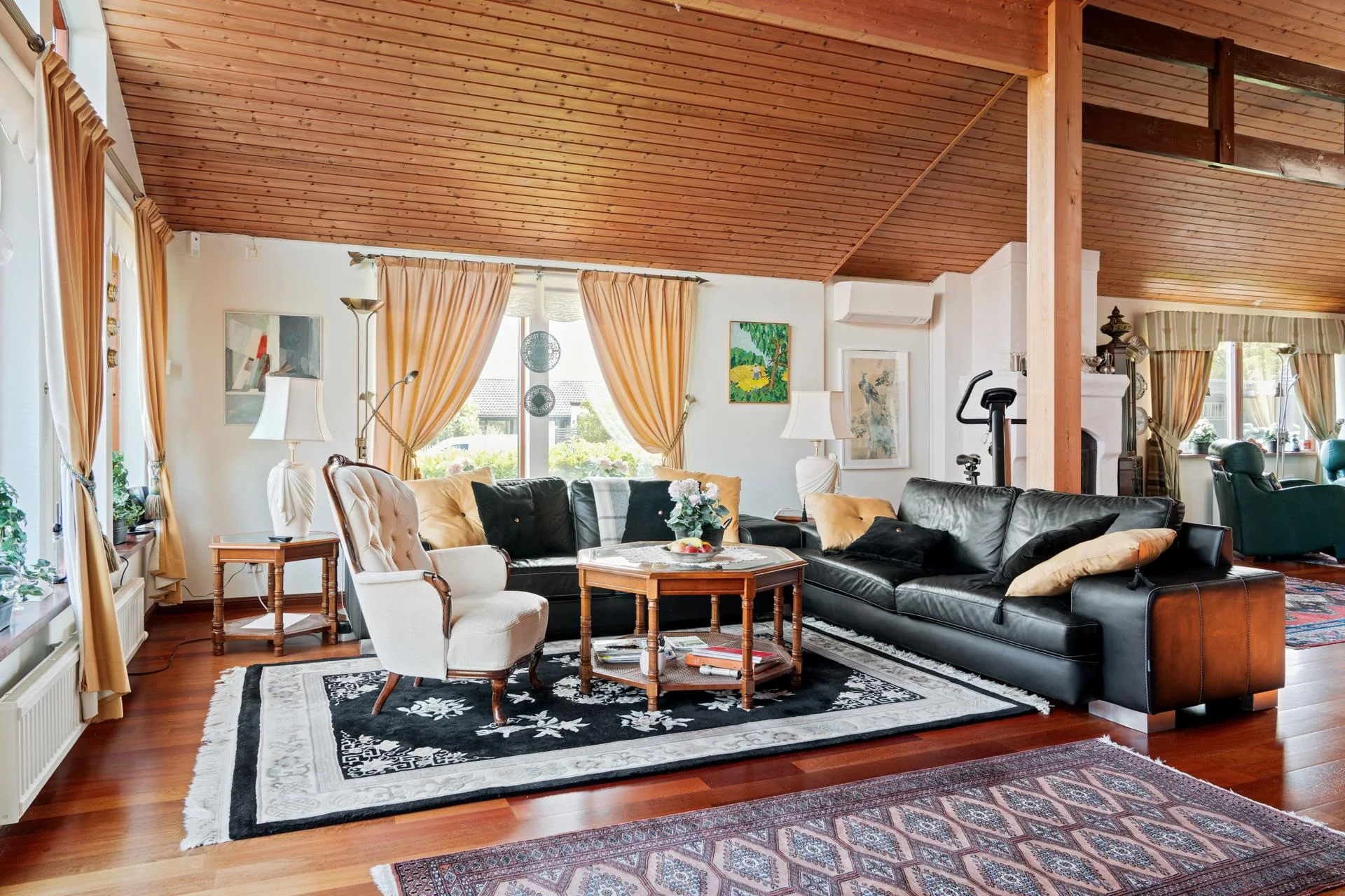 Villan imponerar direkt med sin öppna och trevliga planlösning, som bjuder på en härlig rymd och ljusinsläpp tack vare den generösa takhöjden. Här finns tre rymliga sovrum som erbjuder gott om plats för familjen eller gäster. De stora sociala och gemensamma utrymmena är perfekta för både avslappnade kvällar och större sammankomster.