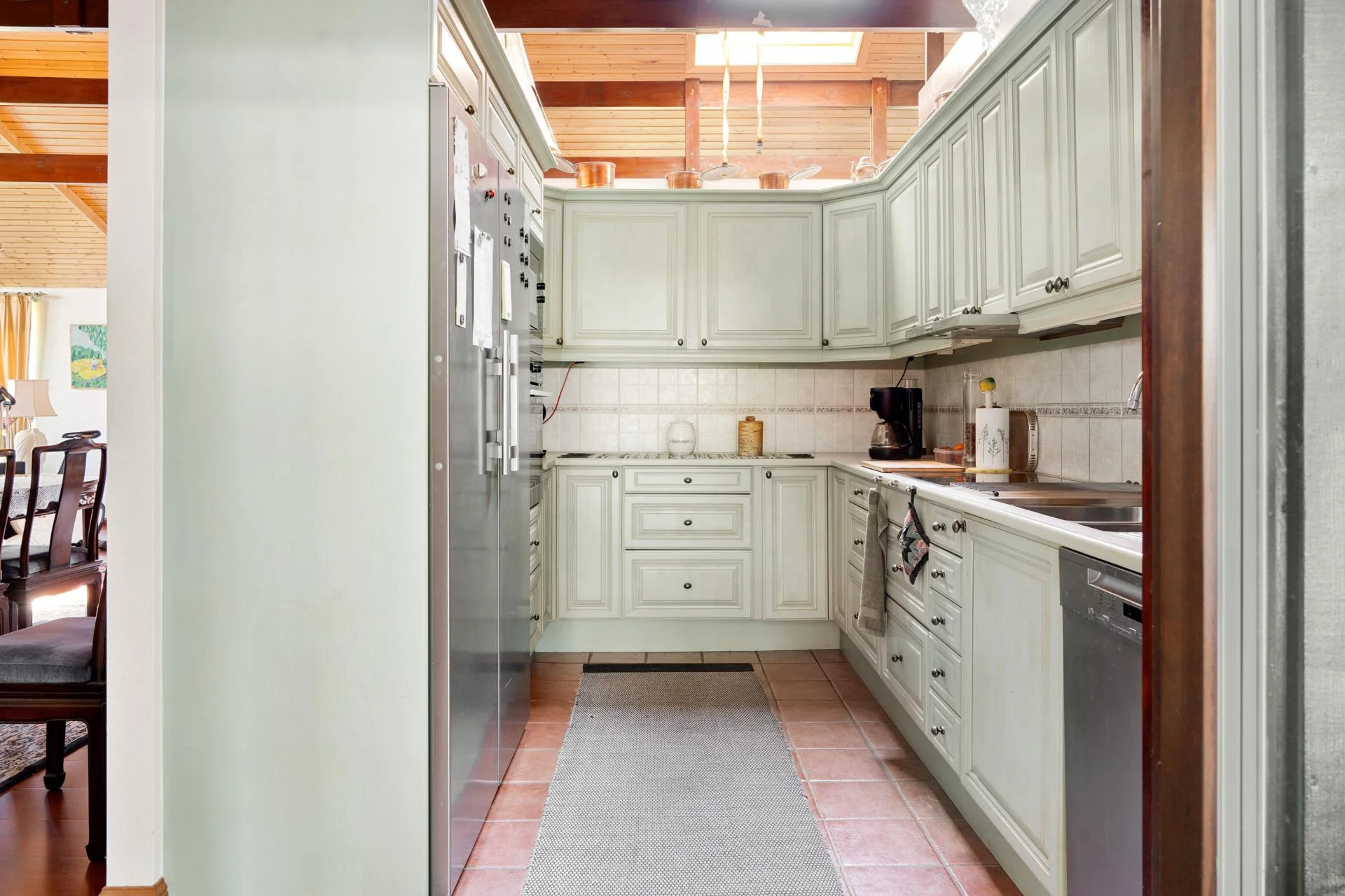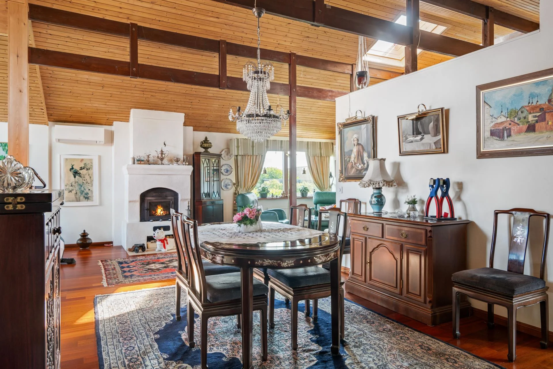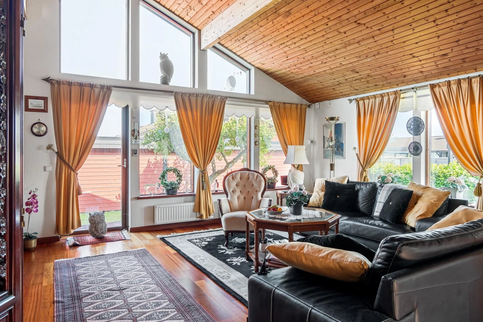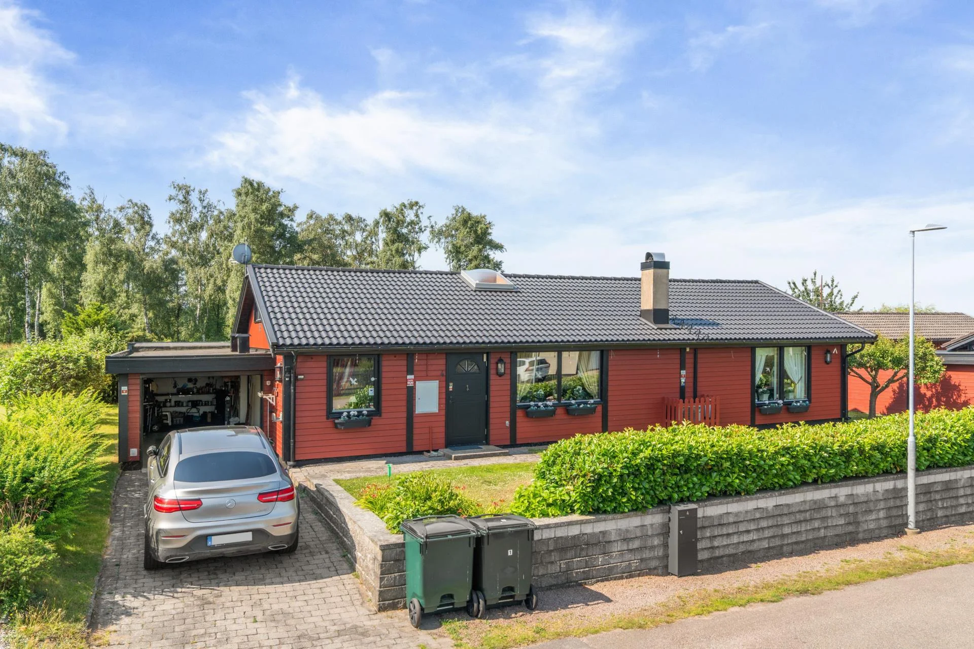 Det kompletta köket, som öppnar upp mot ett charmigt uterum, är en dröm för alla matlagningsentusiaster. Från uterummet kliver du ut på en stor altan i vackert adelträ, som leder vidare till en imponerande uteplats. Här kan du njuta av sommarens soliga dagar vid poolen med jetstream eller koppla av i uterummet i söderläge.