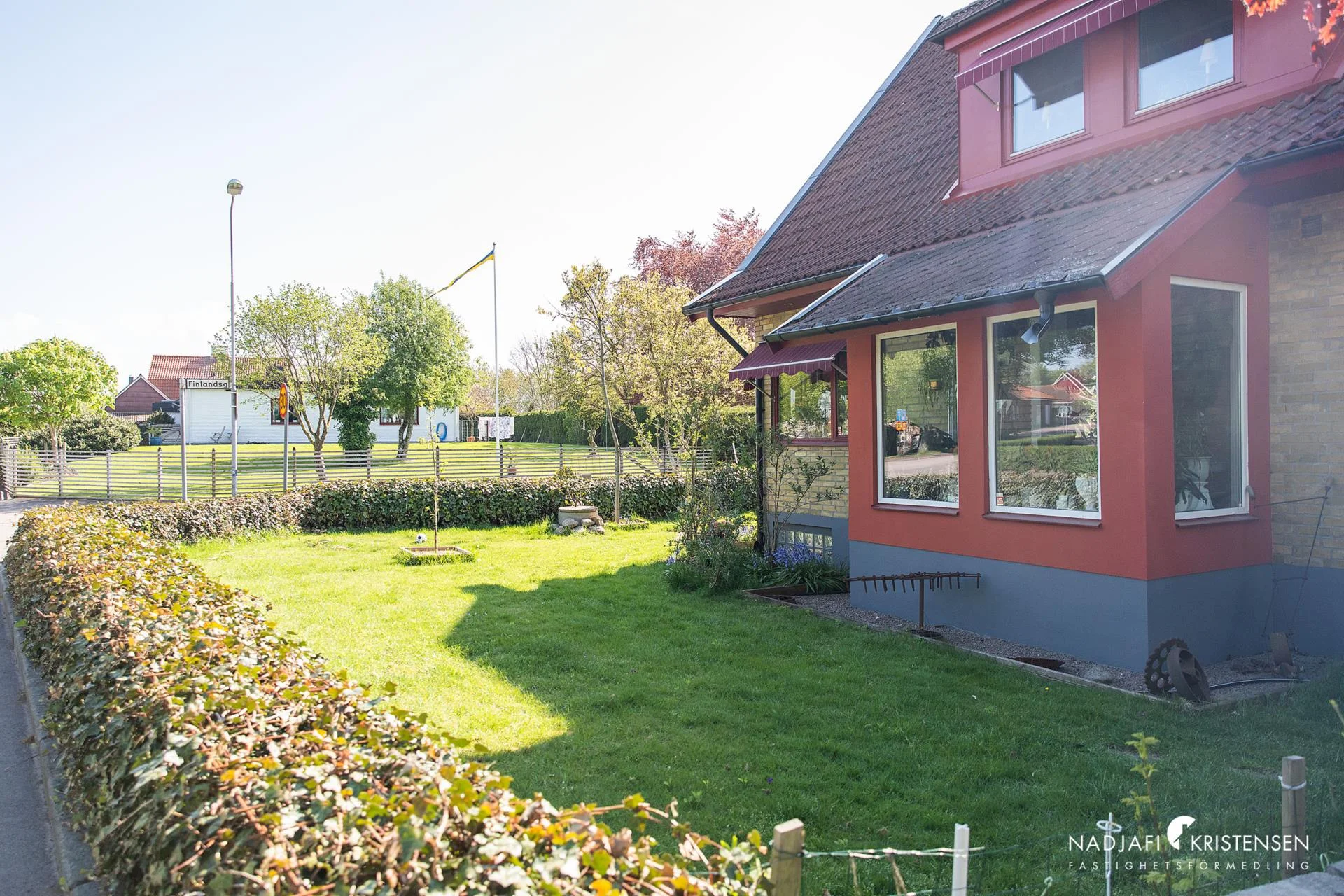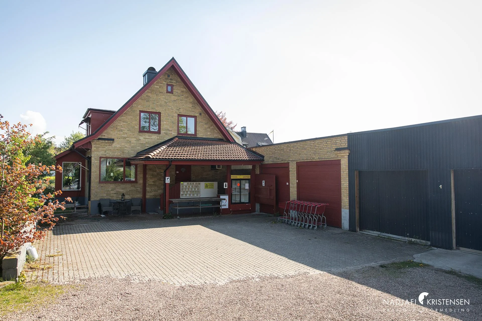 1½-plans villa med inredd källare och stor garage-/verkstadsbyggnad i Munka-Ljungby