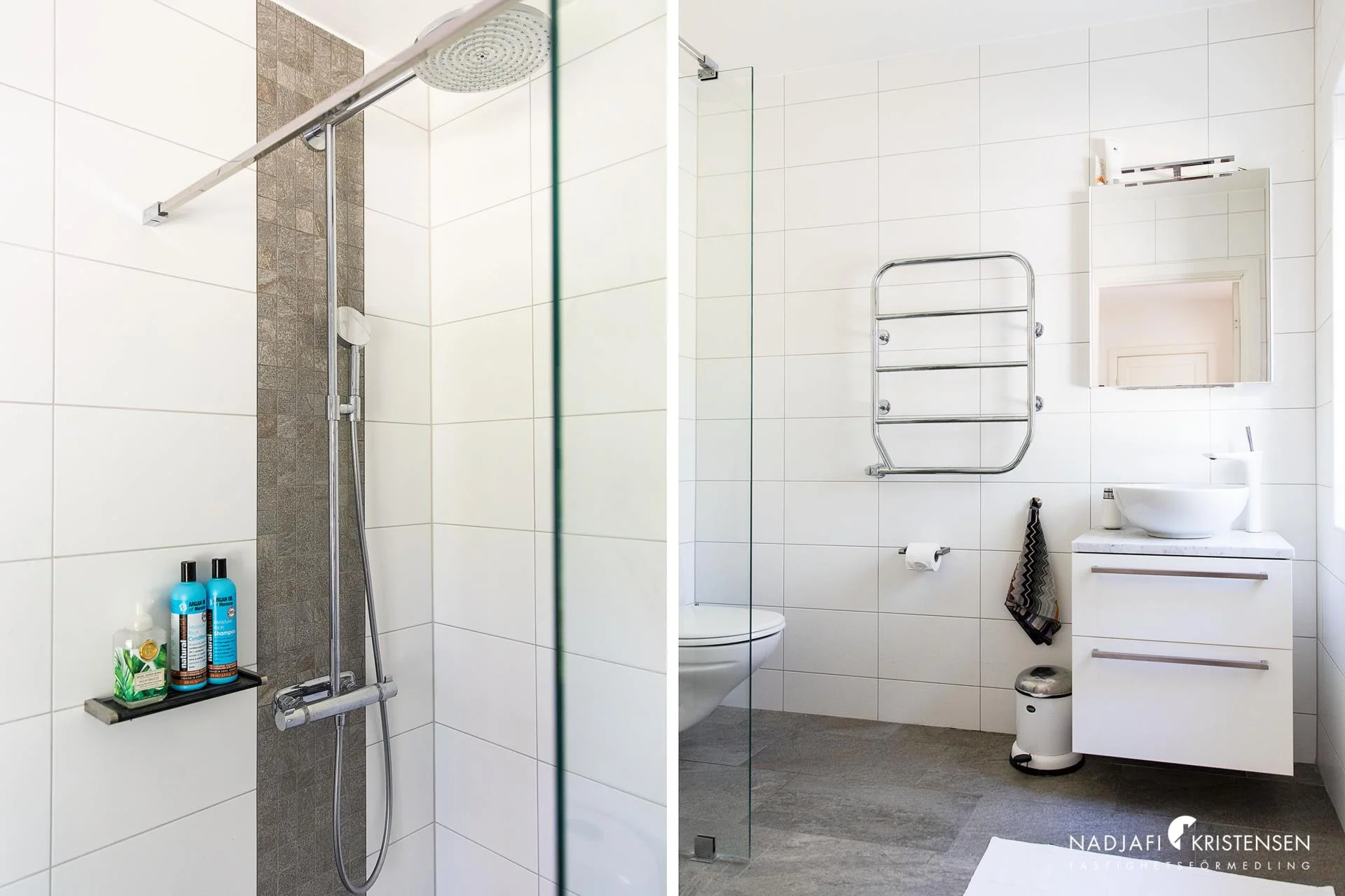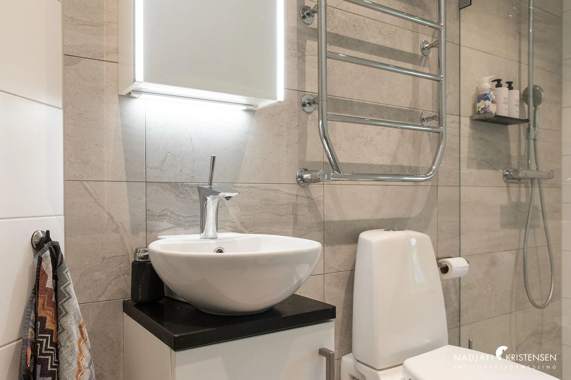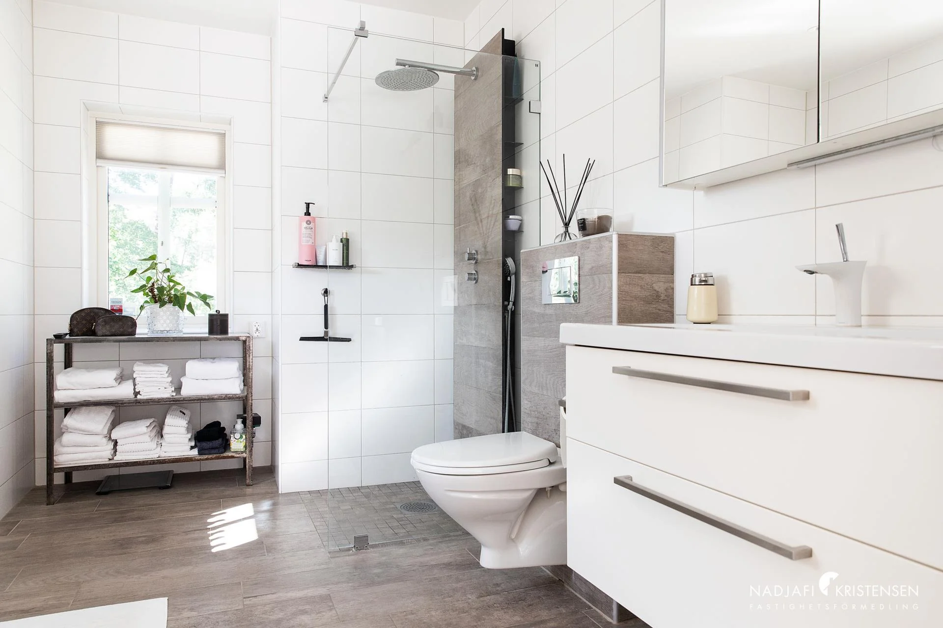 Bostaden rymmer fyra välplanerade sovrum, varav master bedroom har en privat en suite-lösning med hotellkänsla. Tre påkostade badrum ger både stil och komfort för hela familjen. Huset värms upp med effektiv och energisnål bergvärme och är genomgående smakfullt inrett med hållbara materialval.