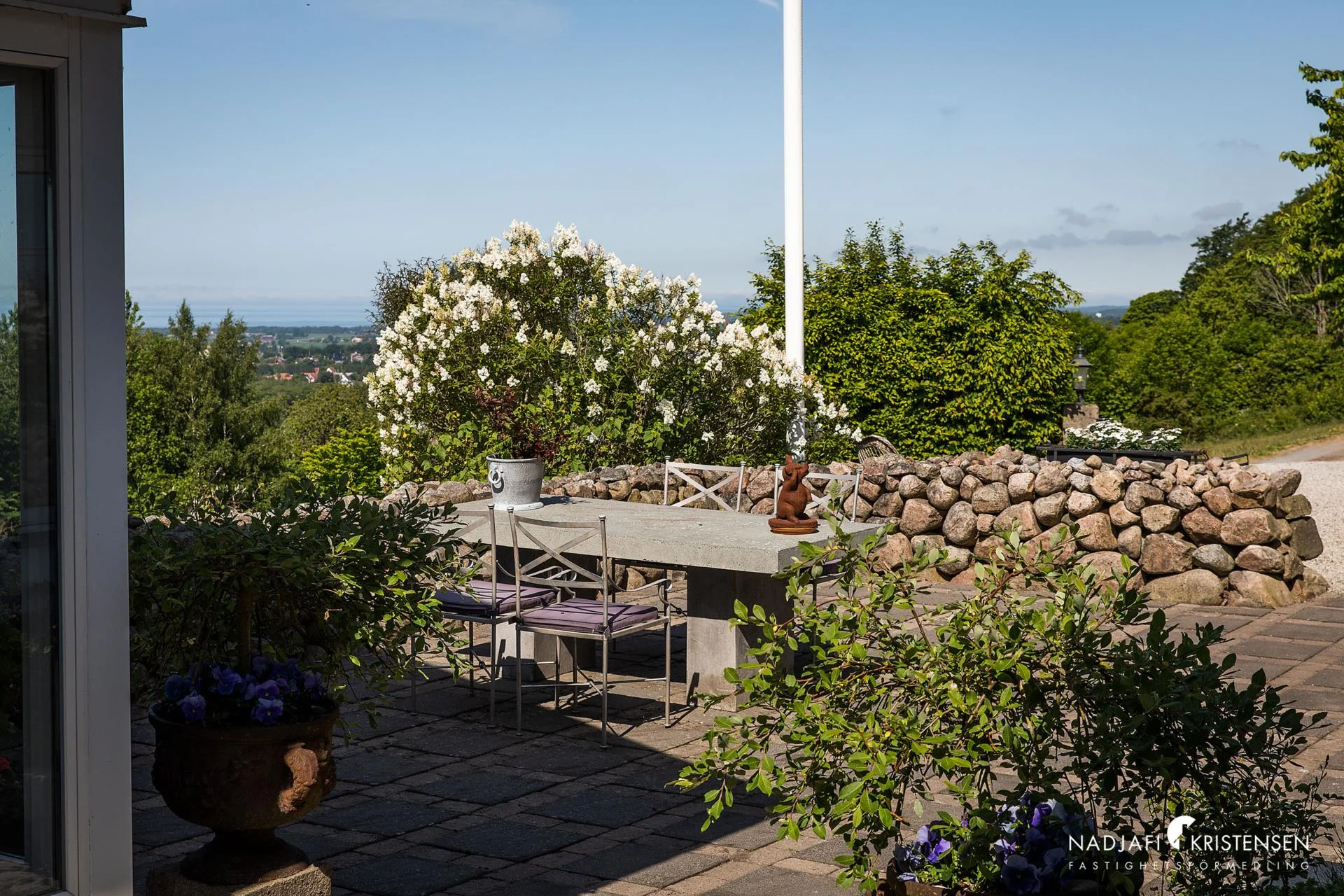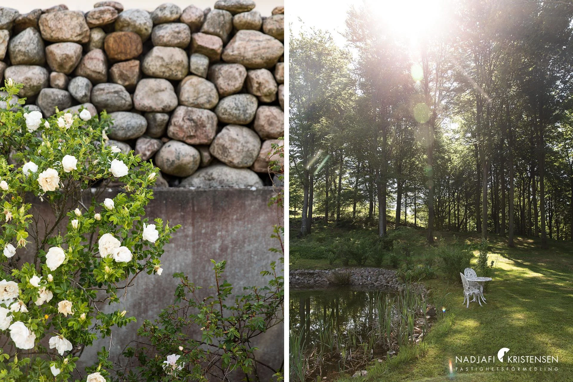Den rustika stengärdesmuren ger fastigheten en både charmig och elegant inramning följt av vackra omgivningar med naturen i fokus.
