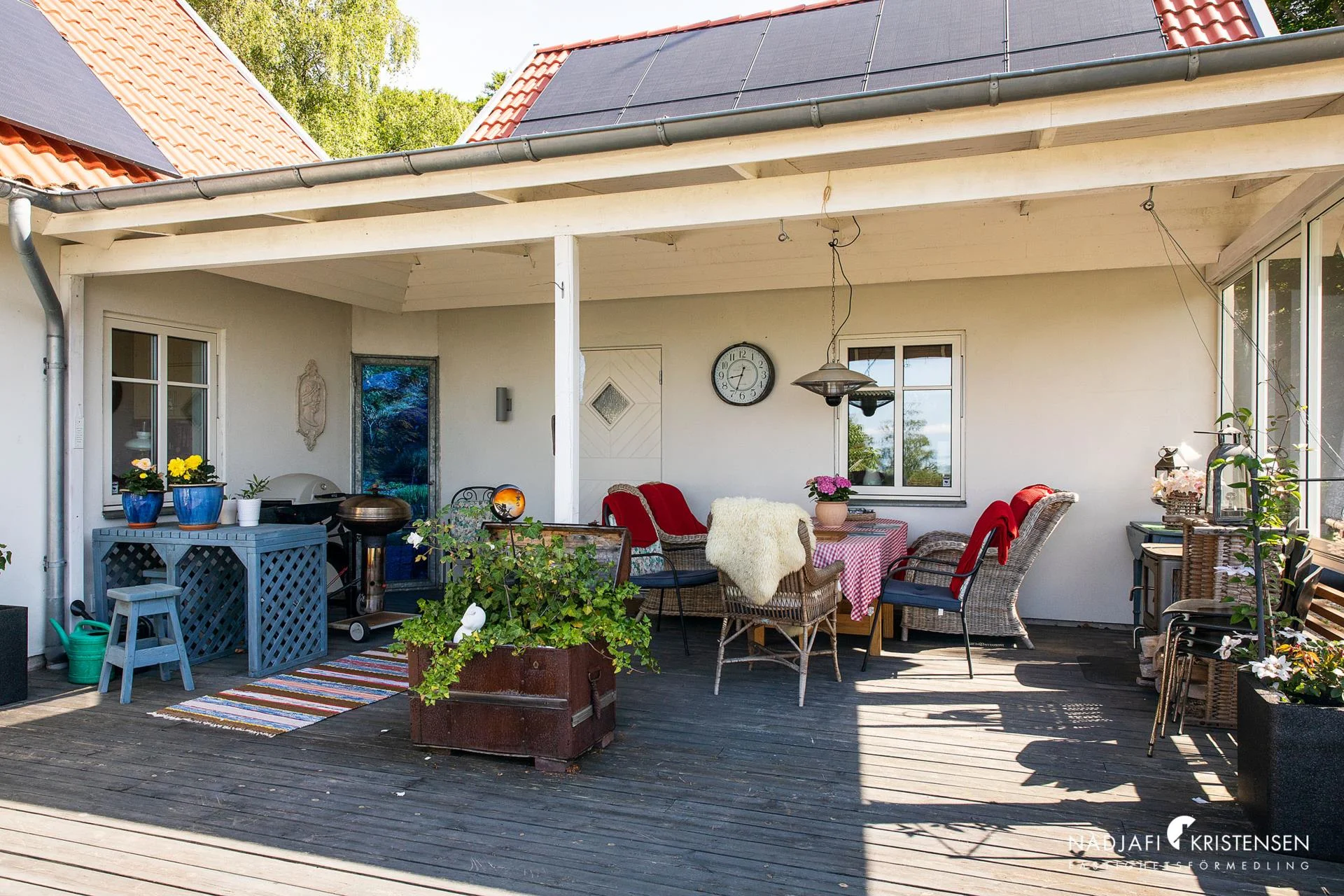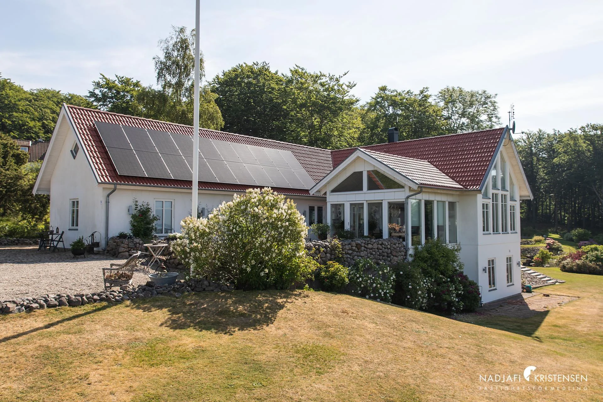 Från den generösa altanen når du fastighetens gästhus – ett perfekt komplement med eget badrum och allrum/sovrum. På fastigheten finns flera soliga uteplatser i olika väderstreck samt ett dubbelgarage med förråd och snickarbod.