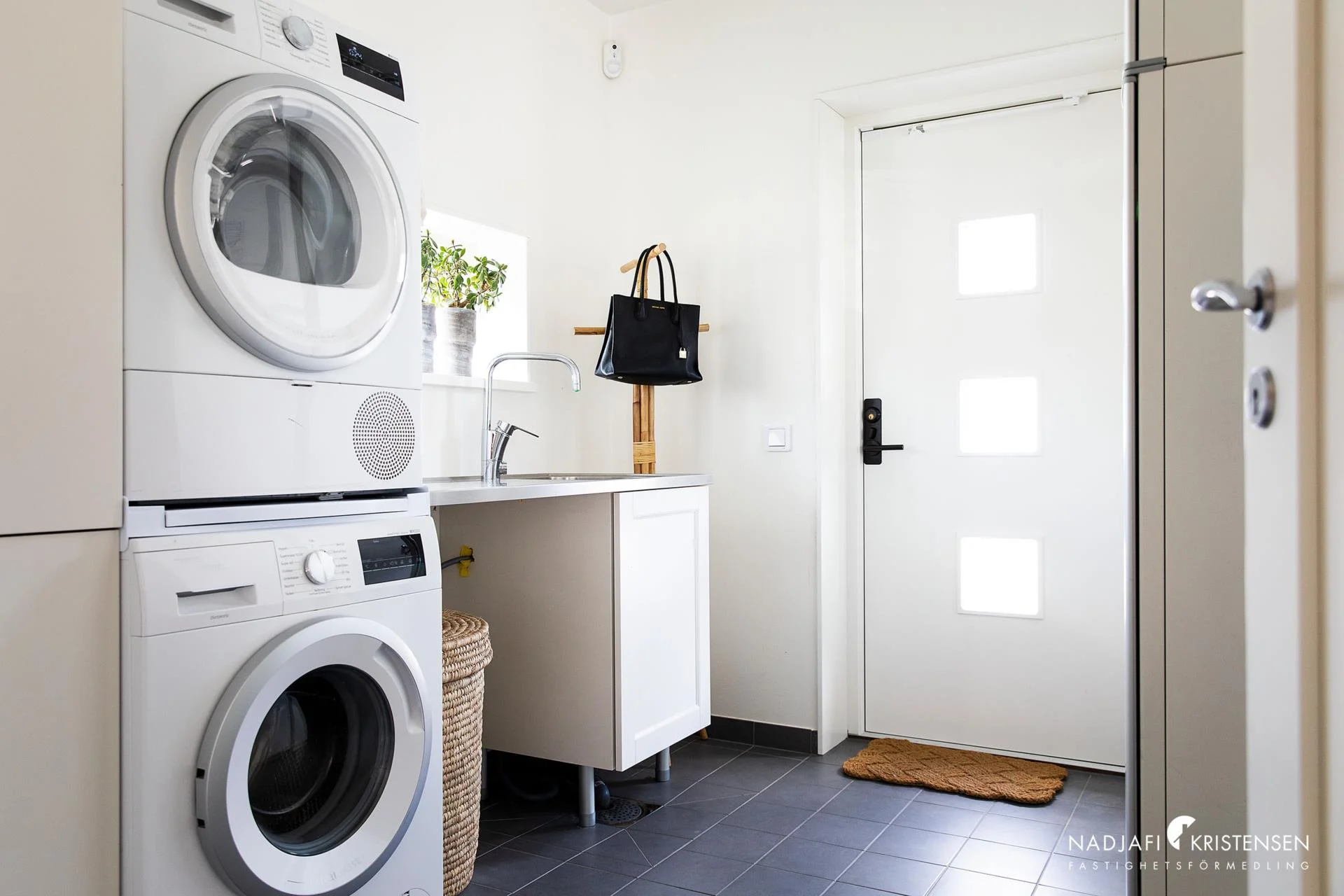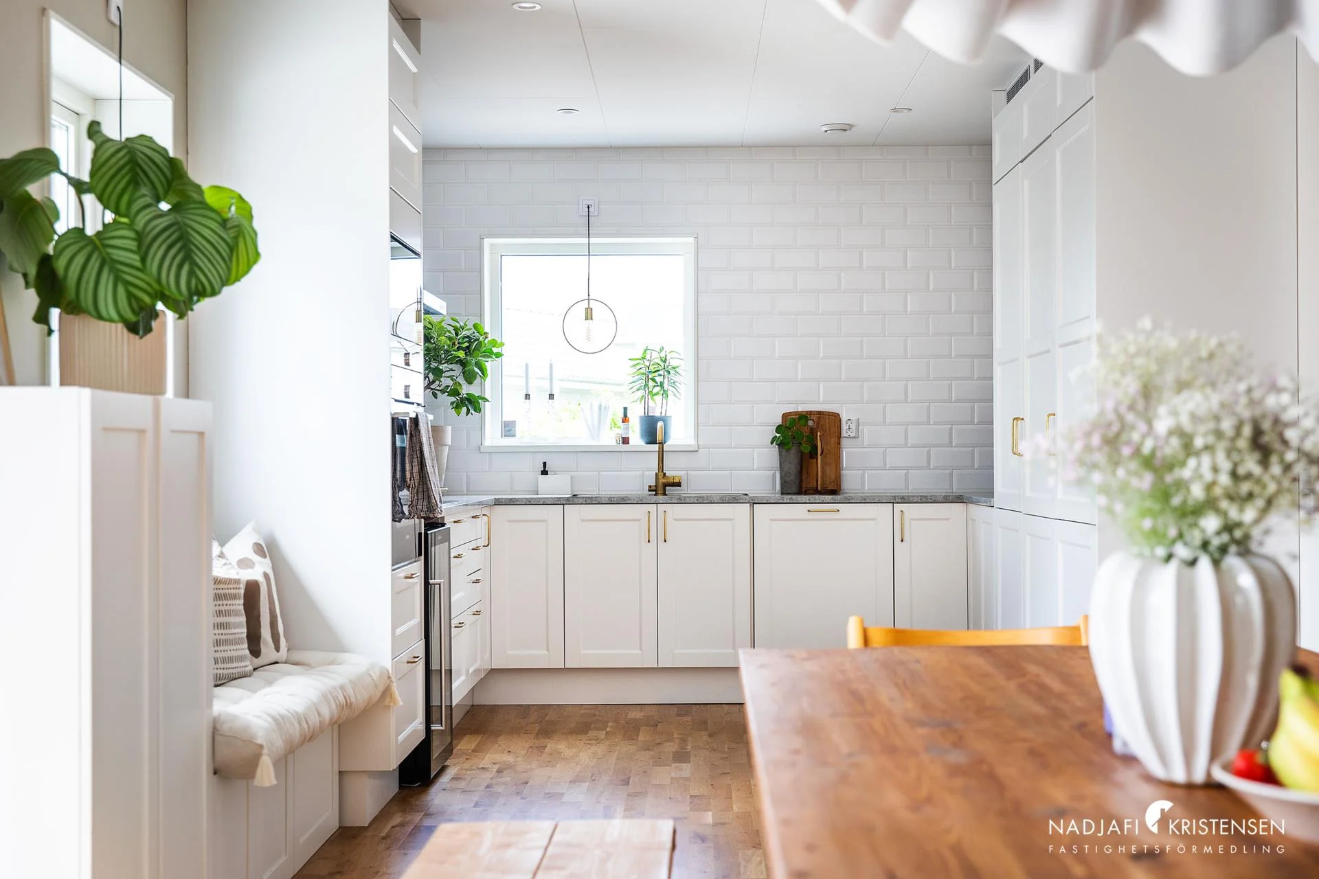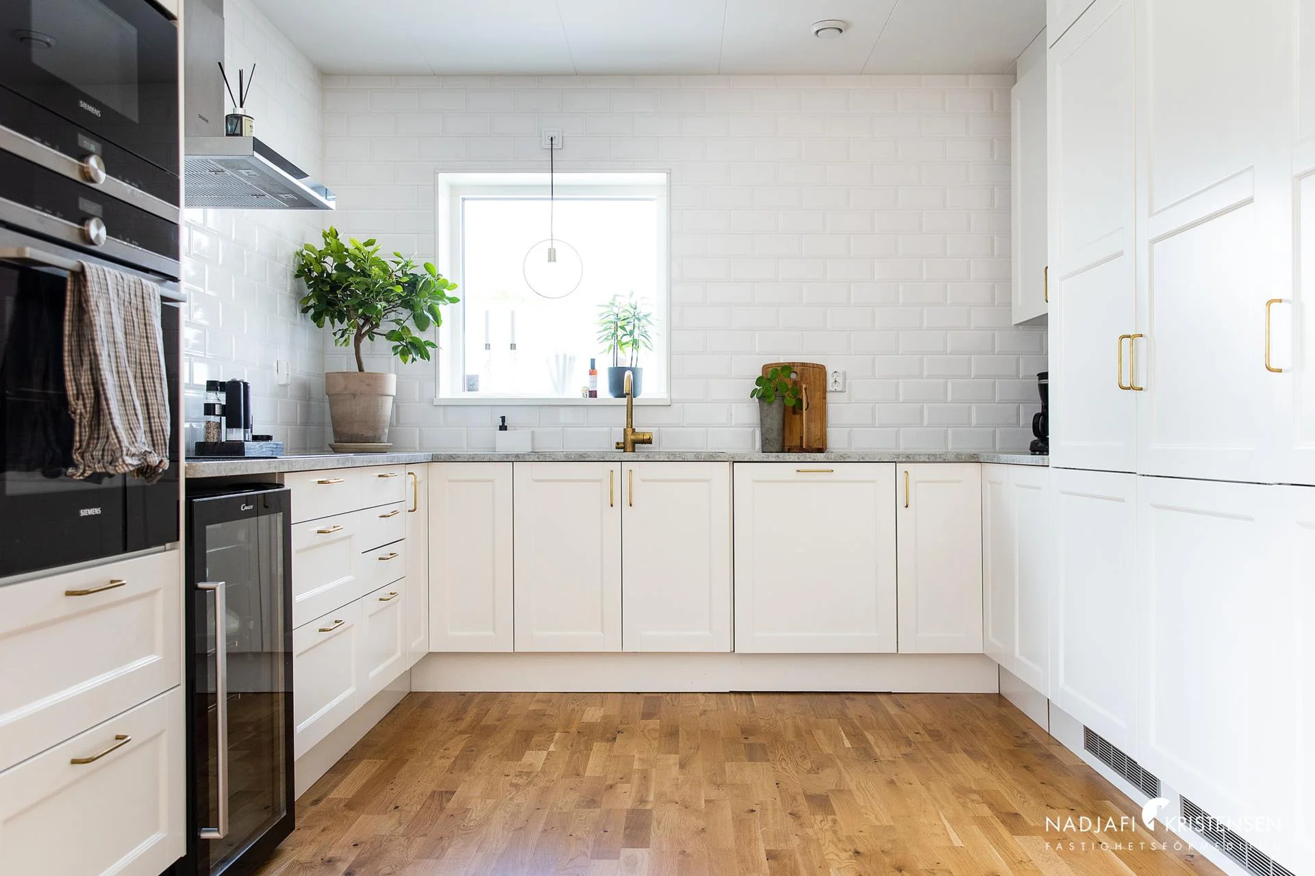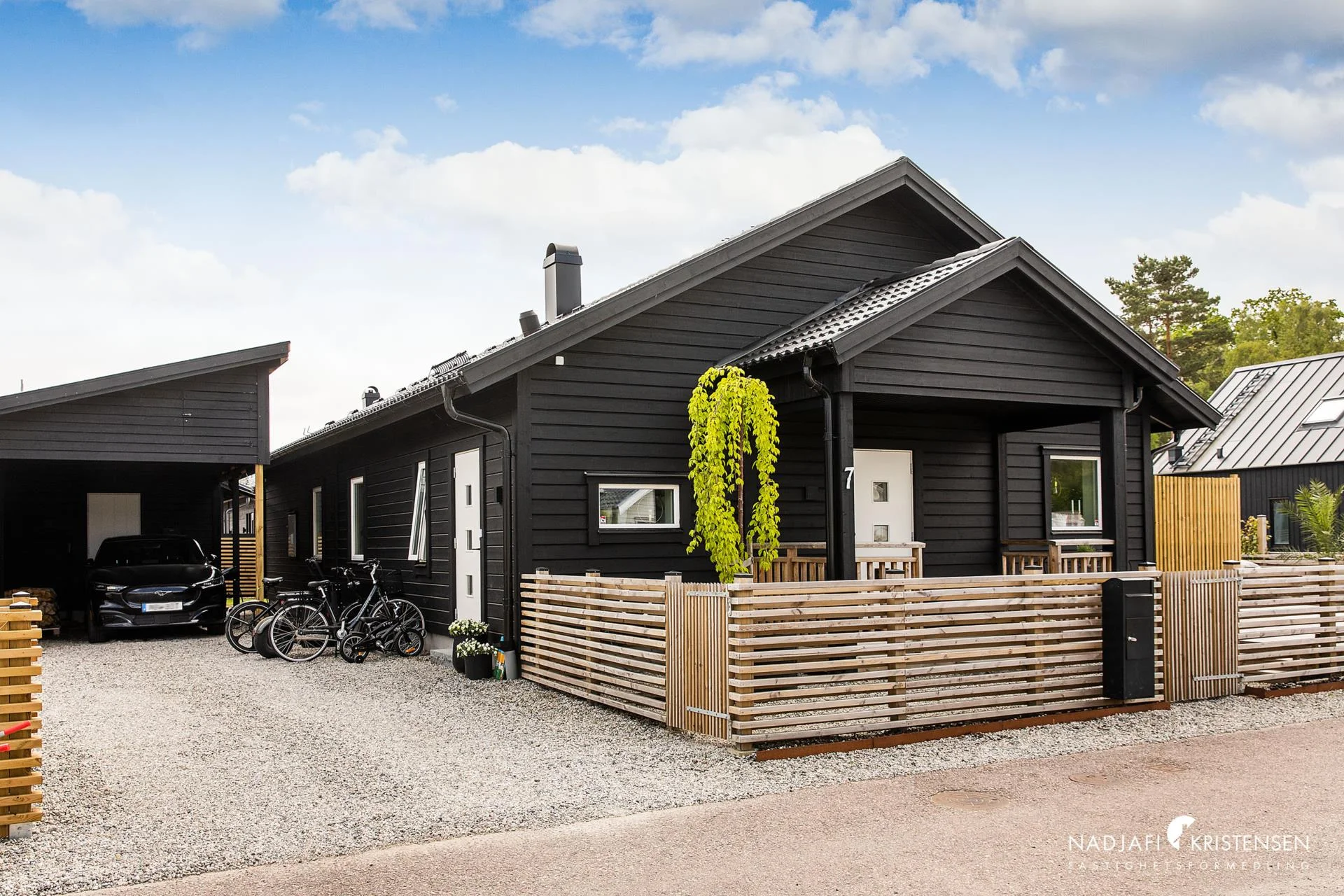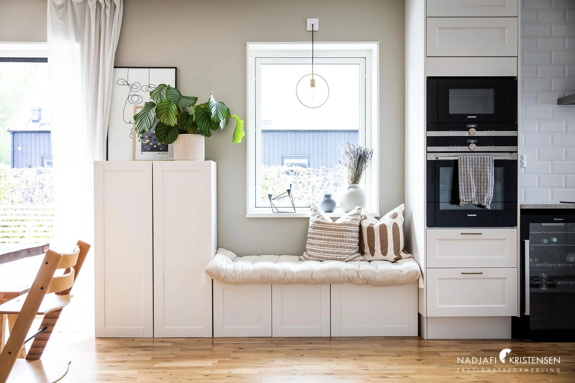 Köket är från Marbodal och har Siemens vitvaror samt en elegant vinkyl. Med en elbilsladdare intill carporten kan du ladda din bil medan du sover och vakna upp till en fulladdad bil varje morgon. Dessutom finns det ett förråd på ca. 15 kvm där du kan förvara allt du behöver.
