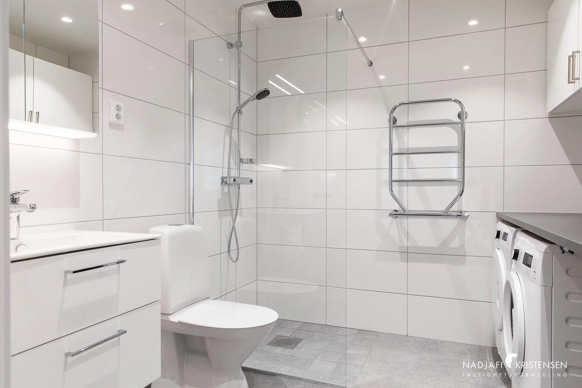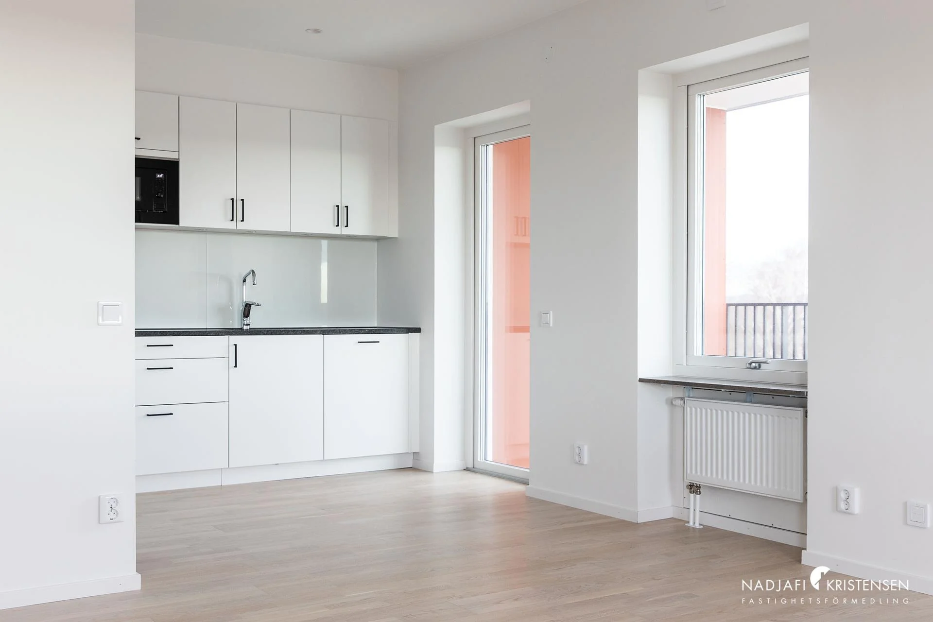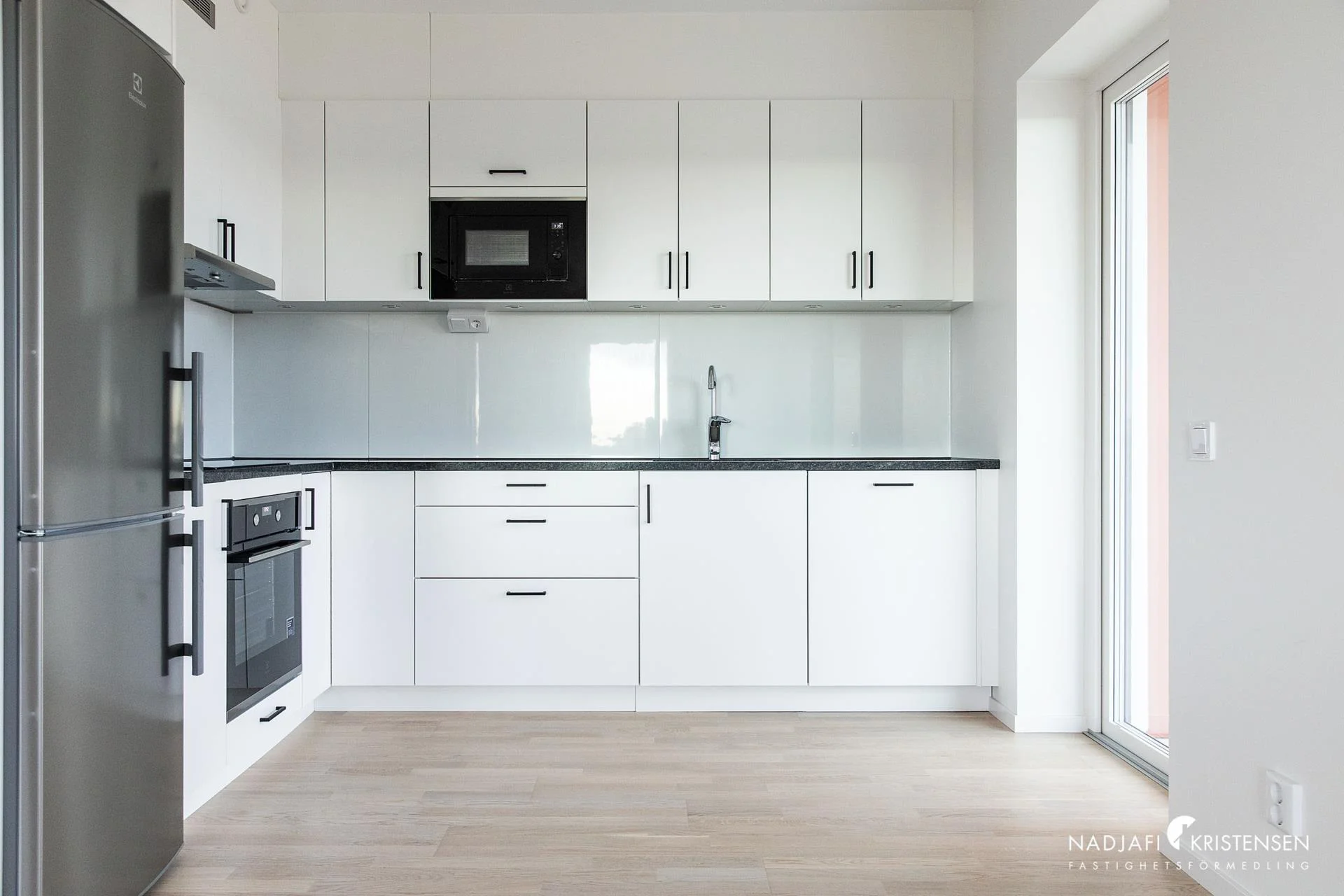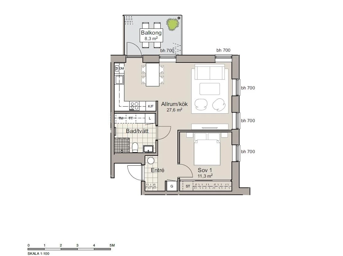 Köket är fullt utrustat med högkvalitativa vitvaror och modern design, perfekt för både matlagning och socialt umgänge. Sovrummet erbjuder gott om plats och är tyst och avskilt, idealiskt för en god natts sömn. Det stora badrummet är, utrustat med tvättmaskin och torktumlare, en praktisk tvättbänk och gott om förvaring för att hålla ditt hem organiserat och prydligt. Den smarta planlösningen och de genomtänkta förvaringslösningarna gör detta till en mycket funktionell bostad.