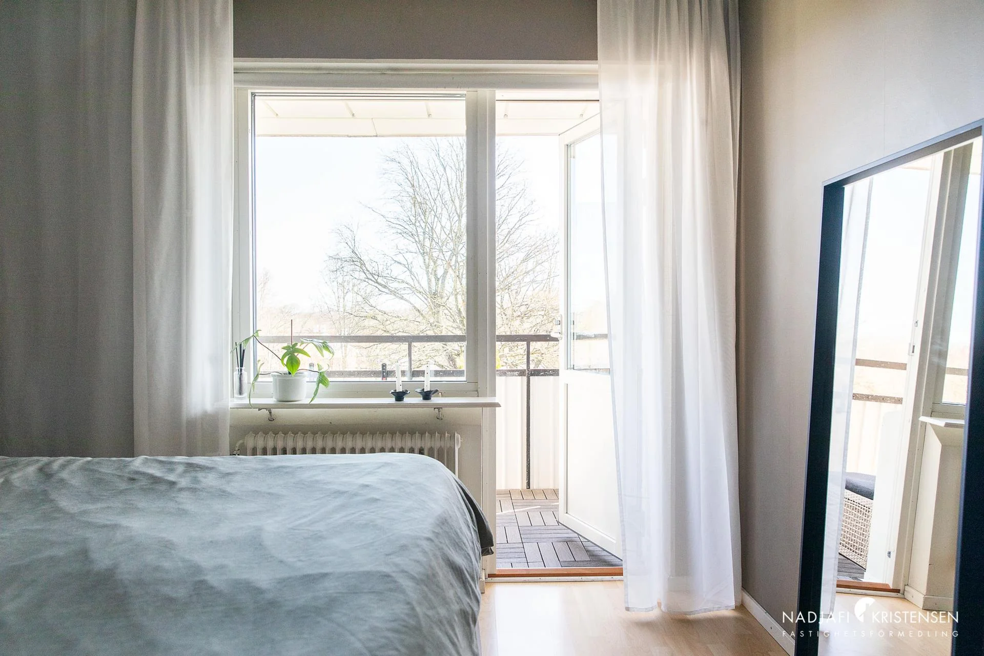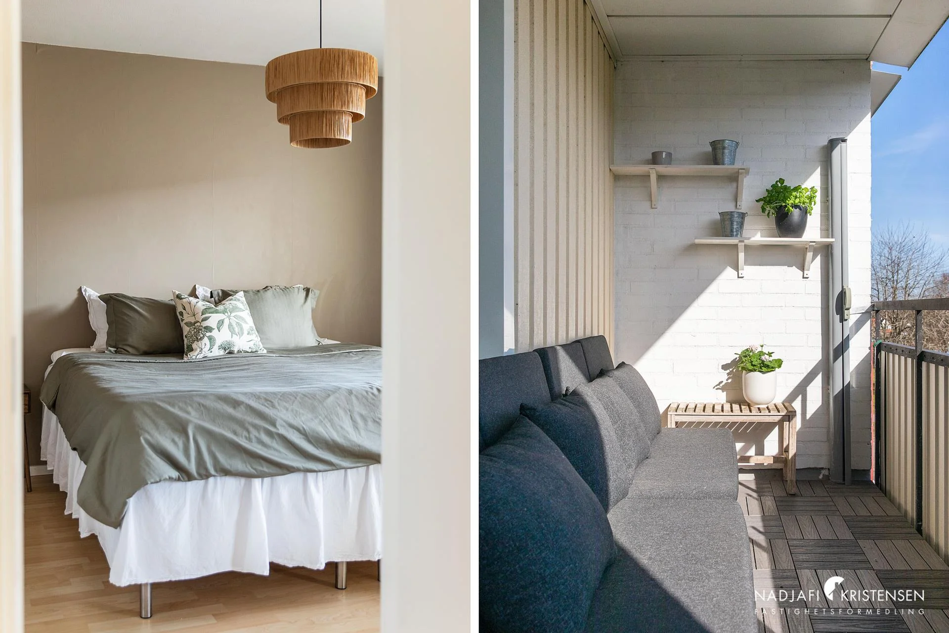 Bostaden erbjuder två sovrum med plats för dubbelsäng. Det ena sovrummet har utgång till balkongen samt direkt access till en mindre klädkammare. Balkongen vetter mot innergården och erbjuder morgon- och förmiddagssol.