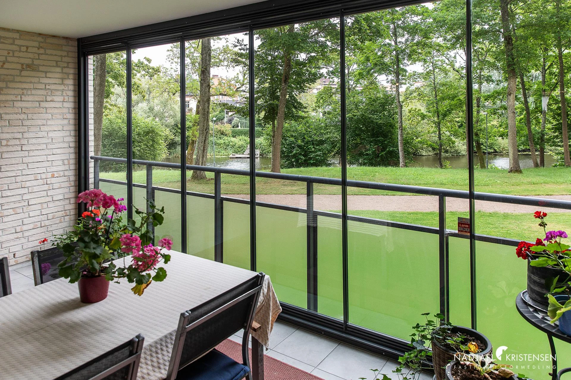 - Det moderna köket erbjuder gott om arbetsyta och vardagsrummet har vacker vy mot Rönne å från den inglasade balkongen där du kan njuta av utsikten året om. Här finns två helkaklade fräscha badrum varav det ena har tvättavdelning. Två sovrum samt gott om förvaring i klädkammare och garderober.