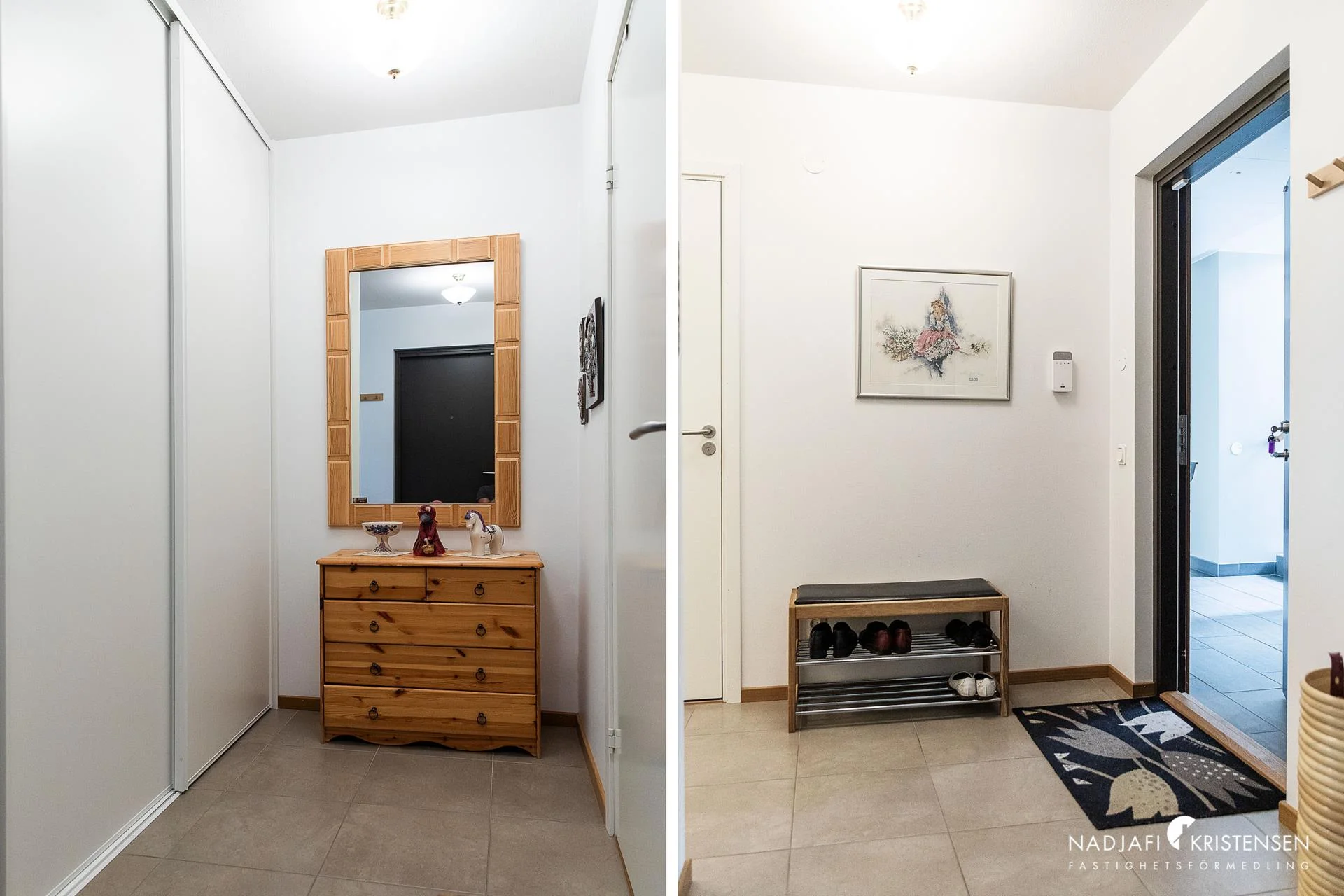 Redan i hallen möts du av en välkomnande känsla med gott om förvaring i skjutdörrsgarderober och praktiskt klinkergolv. Vidare löper parkettgolv tillsammans med ljusa väggar som skapar en stilren helhet. Köket är modernt och fräscht i vitt med generösa arbetsytor, köksö och plats för matbord. Här bidrar det härliga ljusinsläppet och de goda förvaringsmöjligheterna till att köket blir hemmets naturliga samlingspunkt och härifrån nås uterummet med klinkergolv och öppningsbara skjutpartier. Vardagsrummet är rymligt och ljust med stora fönsterpartier som släpper in rikligt med dagsljus. Härifrån nås bostadens inglasade altaner med utsikt över Rönne å – en plats att njuta av året runt, oavsett väder.