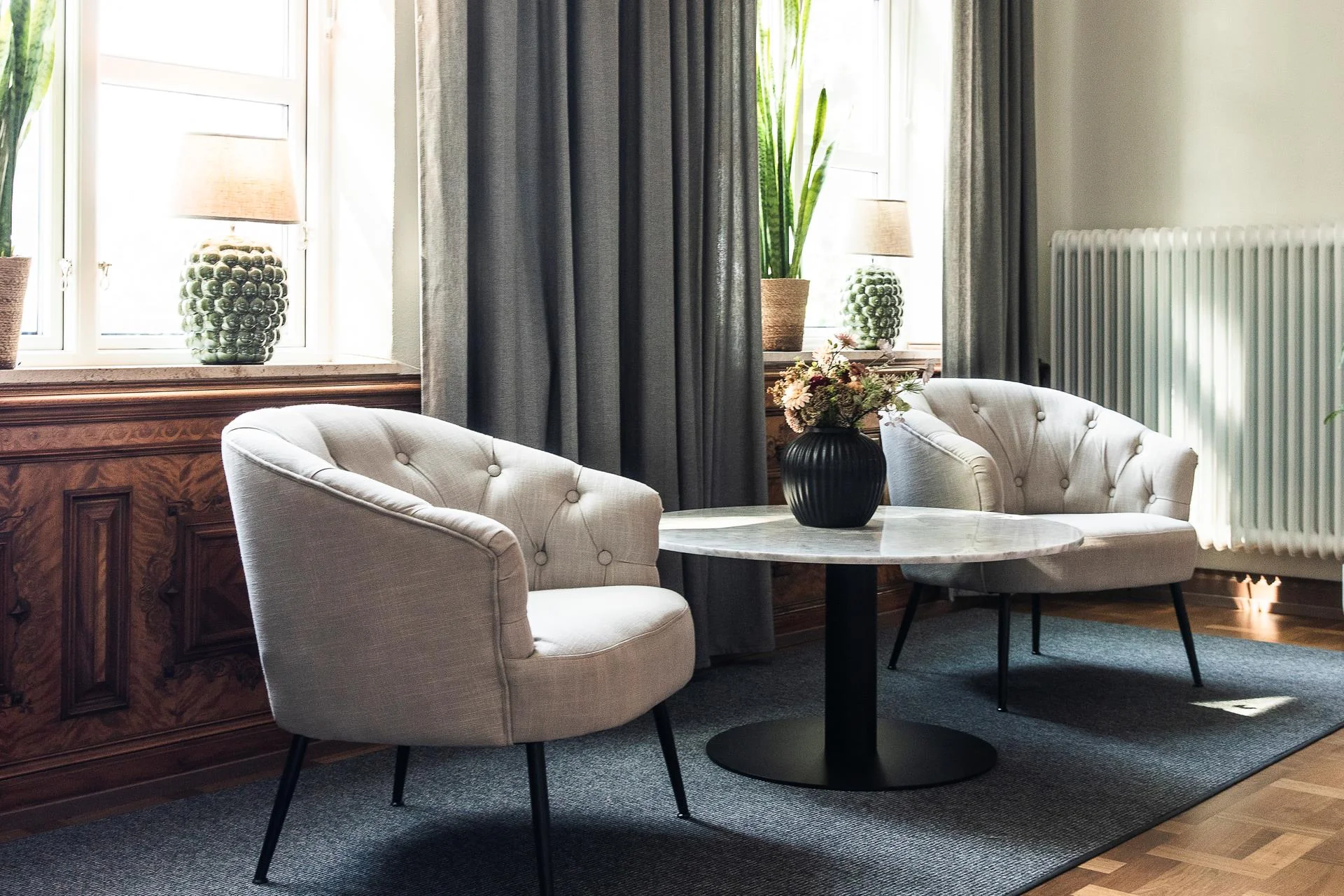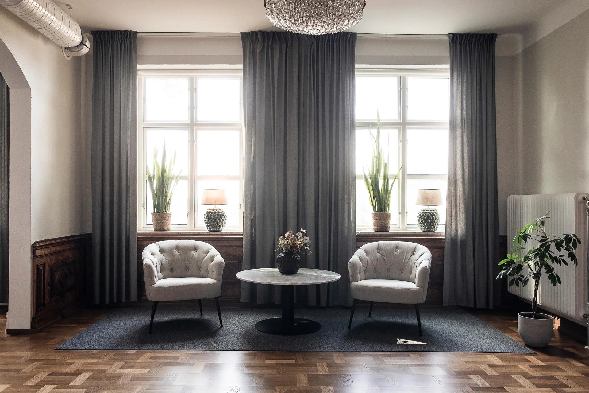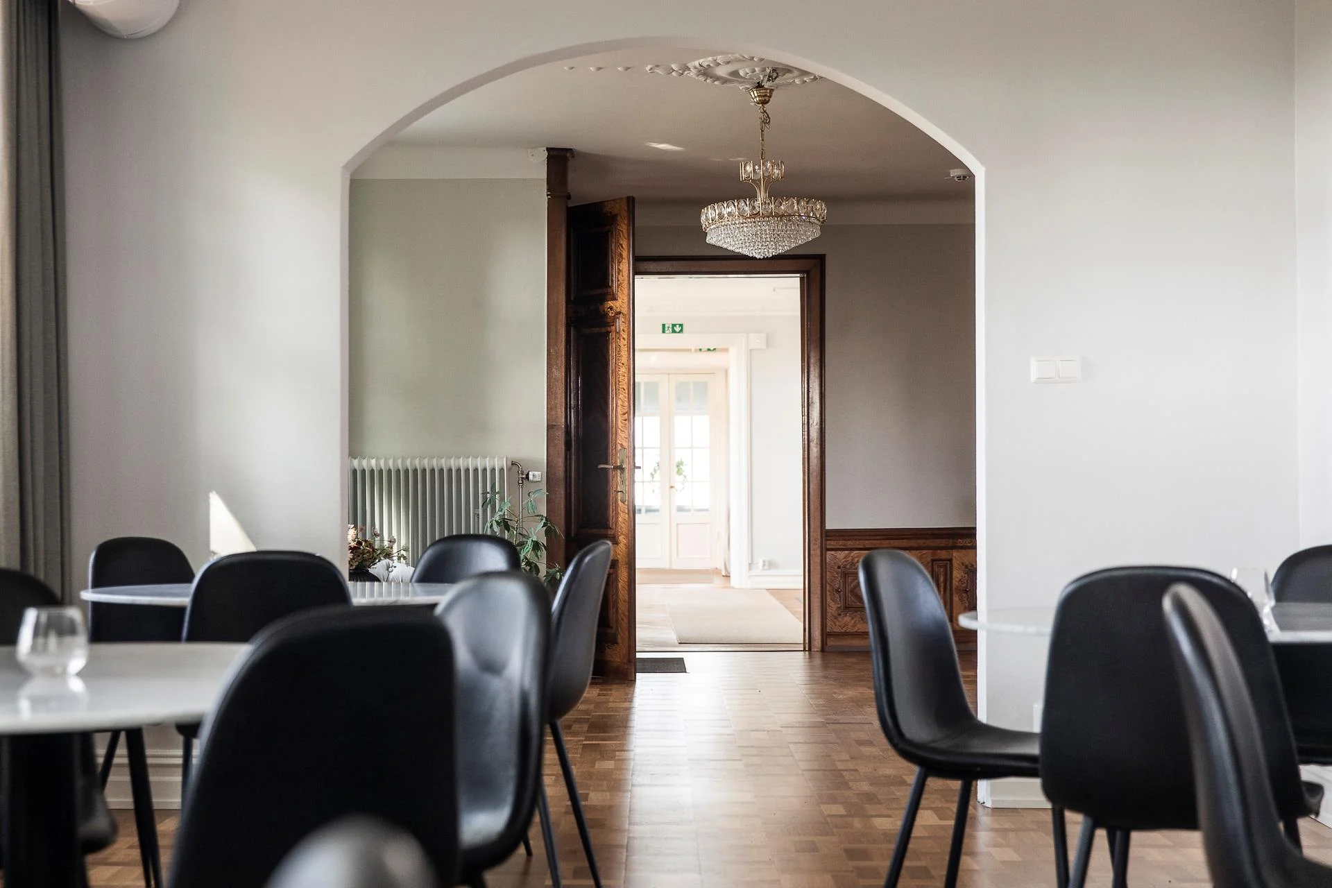 - Herrgården har fått en genomgripande renovering både invändigt och utvändigt, där byggnadens tidstypiska detaljer varsamt bevarats. Bevarade träpaneler, massiva golv och klassiska inslag skapar en varm och exklusiv atmosfär som präglar hela fastigheten.
