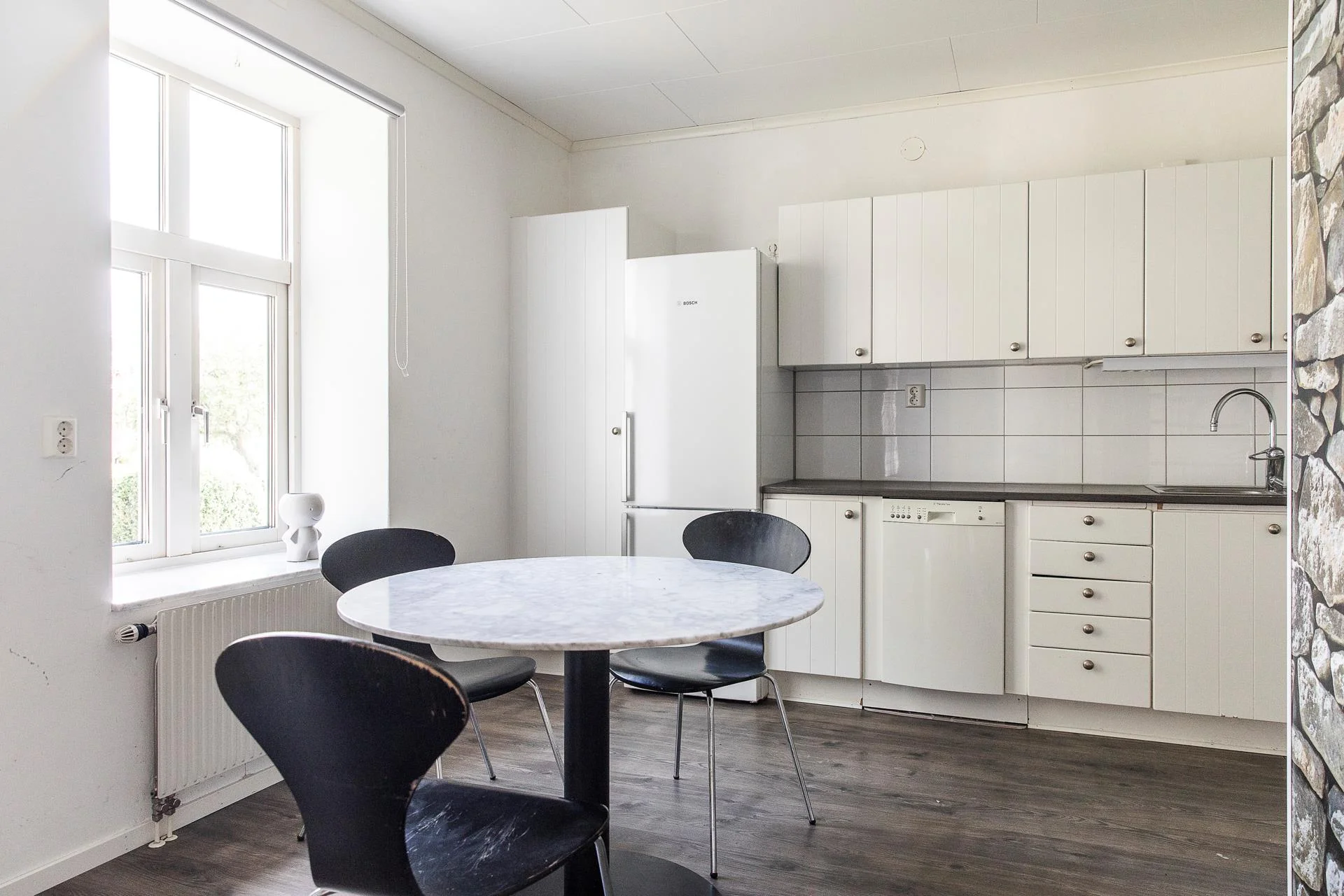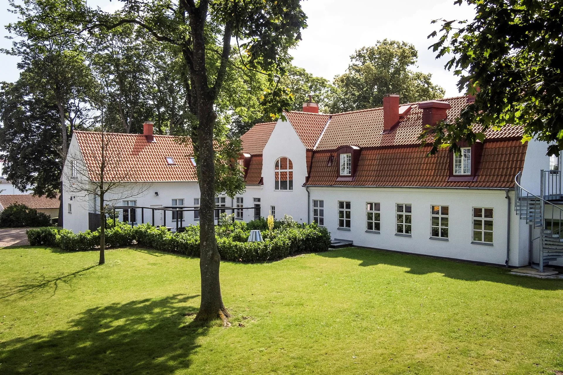 - På den stora tomten om dryga 12 000 kvadratmeter finns även en egen fastighet/byggnad med två lägenheter. Just nu är en av de två lägenheterna uthyrda men på sikt planeras även dessa ytor vara tömda för en köpare. Denna fastighet med en totalyta på cirka 240 kvadratmeter och erbjuder en stabil extrainkomst eller möjlighet för personalboende. Den historiska charmen återfinns även här, och byggnaden har genomgått löpande underhåll och renoveringar sedan 1990-talet.
