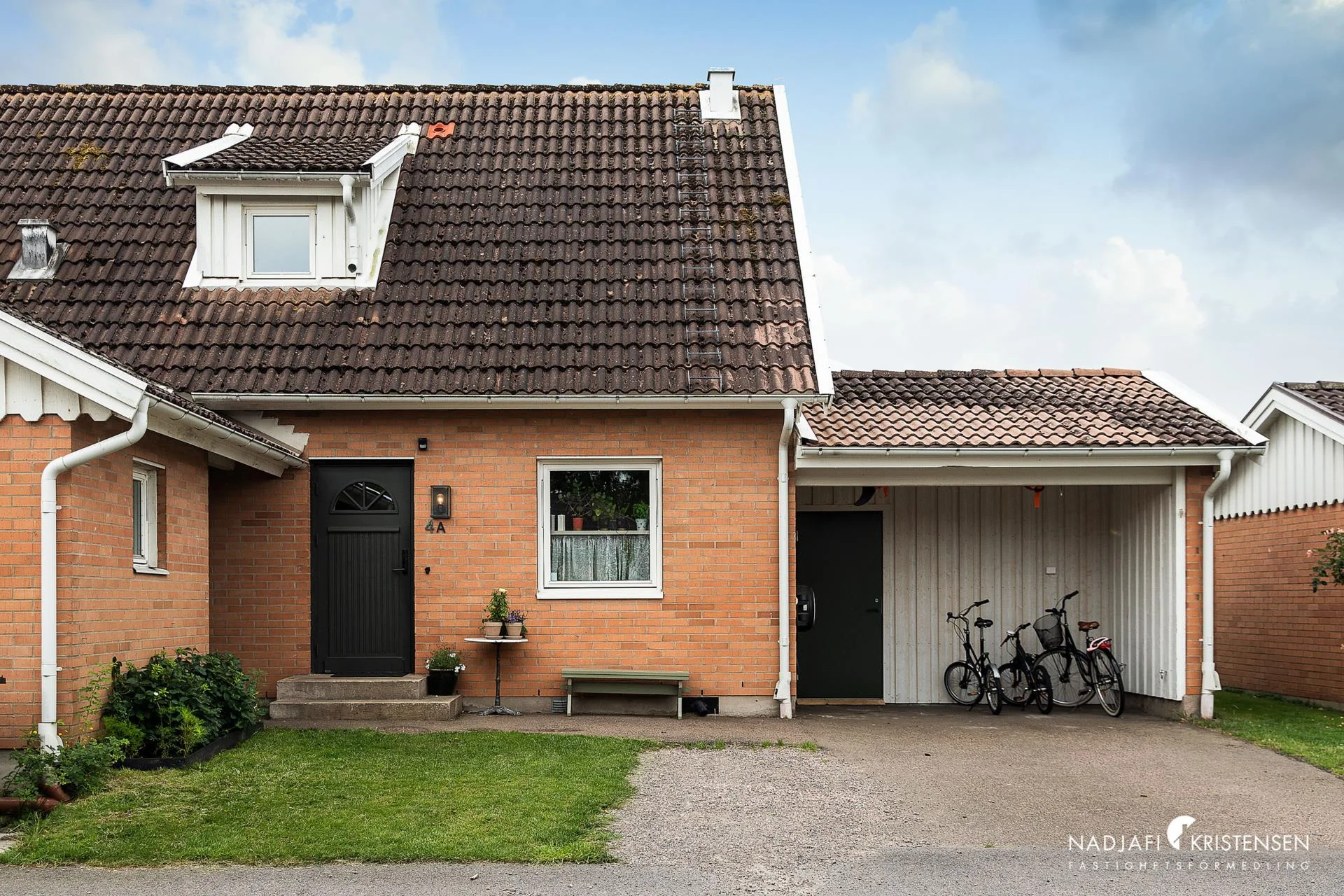 Carport och asfalterad uppställningsplats.