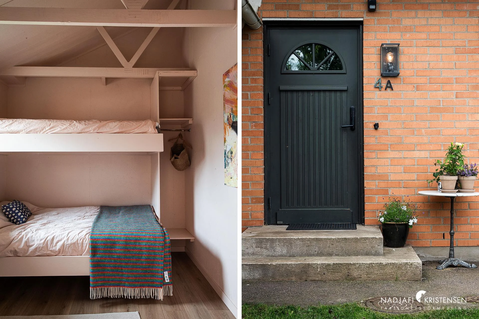 Ett extra plus är det ombyggda förrådet på entrésidan som idag rymmer ett extra sovrum med våningssäng – perfekt för gäster eller hemmakontor!
