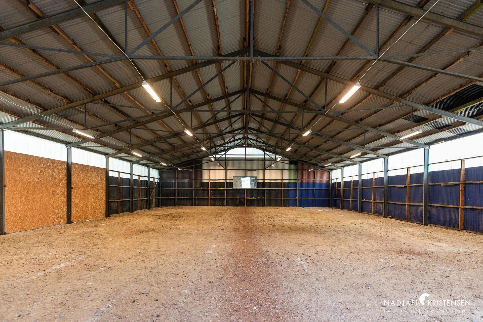 Ridhuset mäter ca 20x40 meter utvändigt och har underlag av lersand och fibermaterial (nytt 2015), belysning med moderna LED-armaturer samt dränering med pump till dike. Här kan du träna året runt.