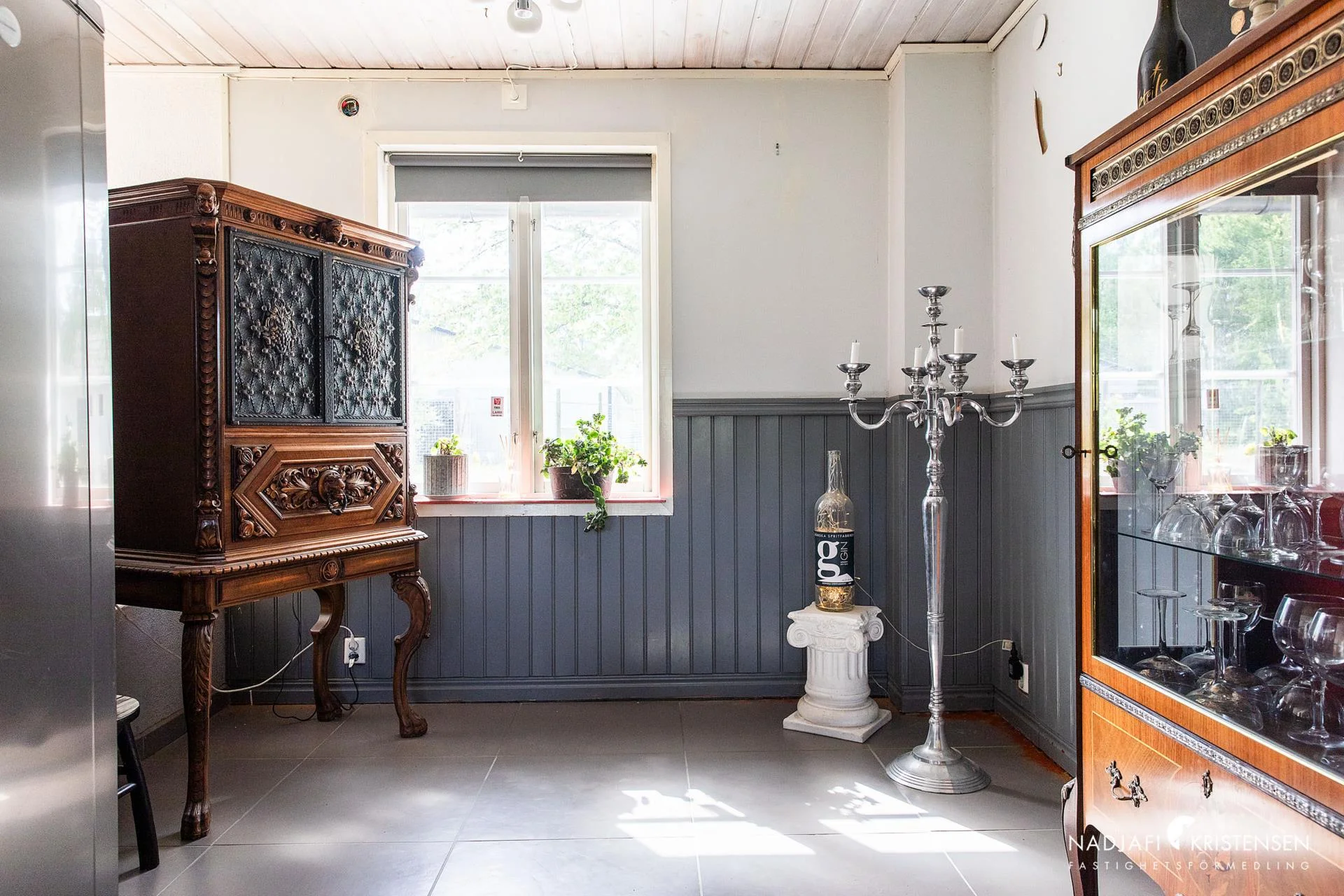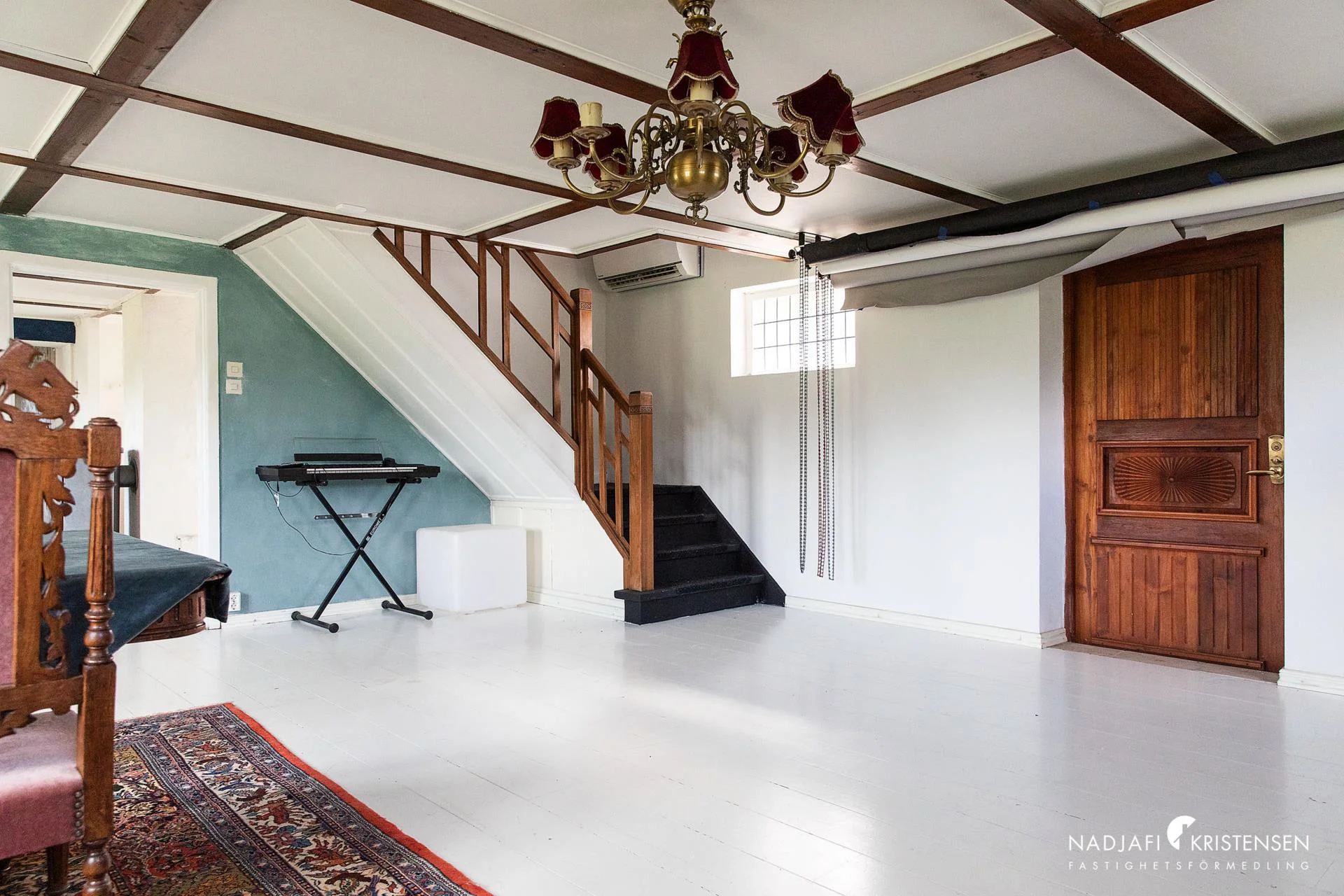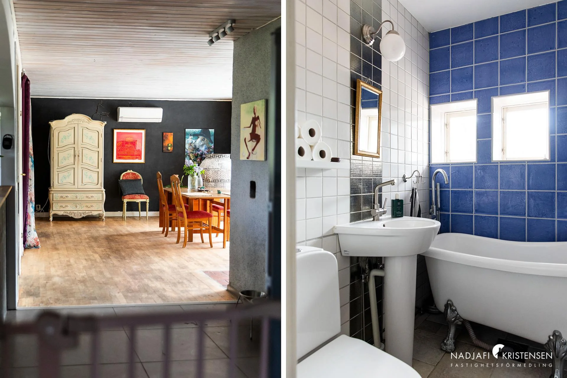 Boningshuset bjuder på generösa 265 kvm boyta och rymmer sju rum och kök, två badrum samt praktisk groventré med tvättstuga. Huset har tidigare varit två separata bostäder men är nu sammanbyggt och erbjuder gott om plats för den stora familjen eller för gäster.