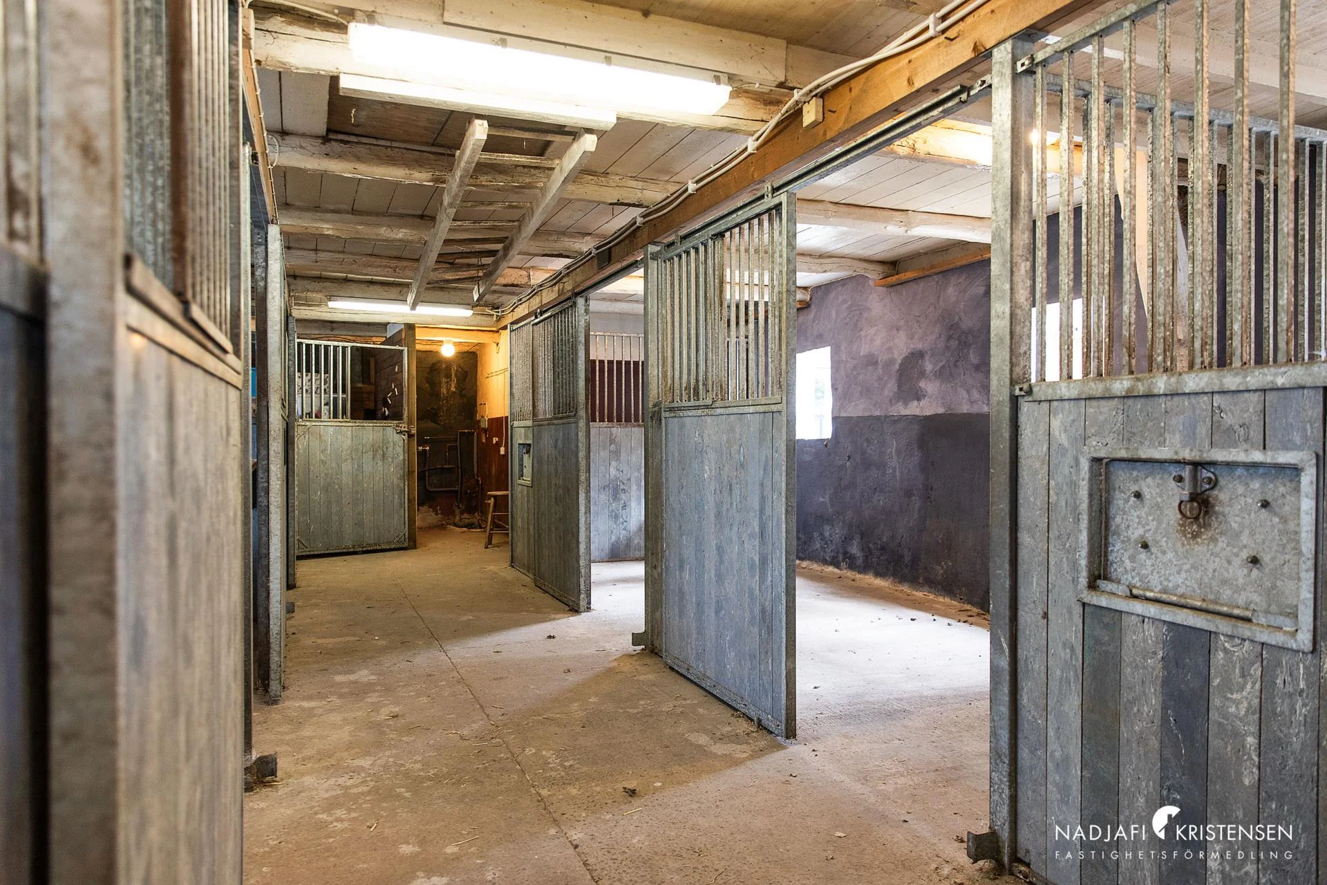 Stallet är murat med putsad fasad/träpanel och inrett med nio boxar i komposit inklusive fölbox det finns även spolspilta samt sadelkammare med direktaccess till boningshuset. Loft med god förvaring och en godkänd gödselplatta utanför.